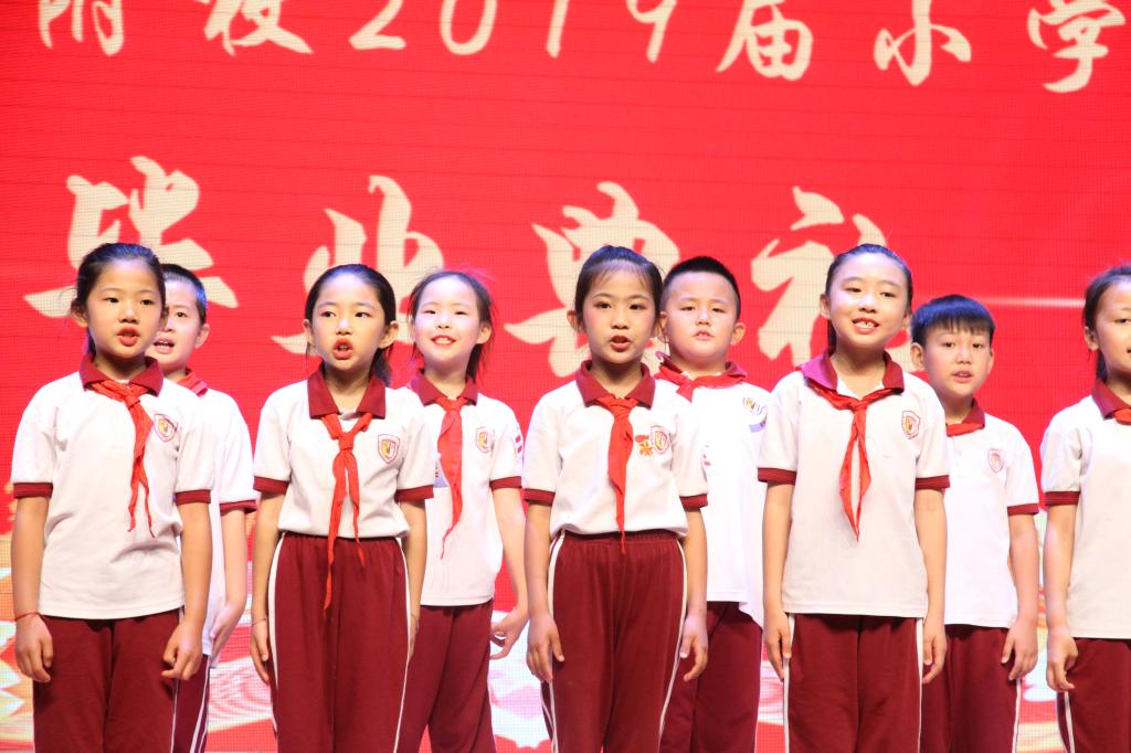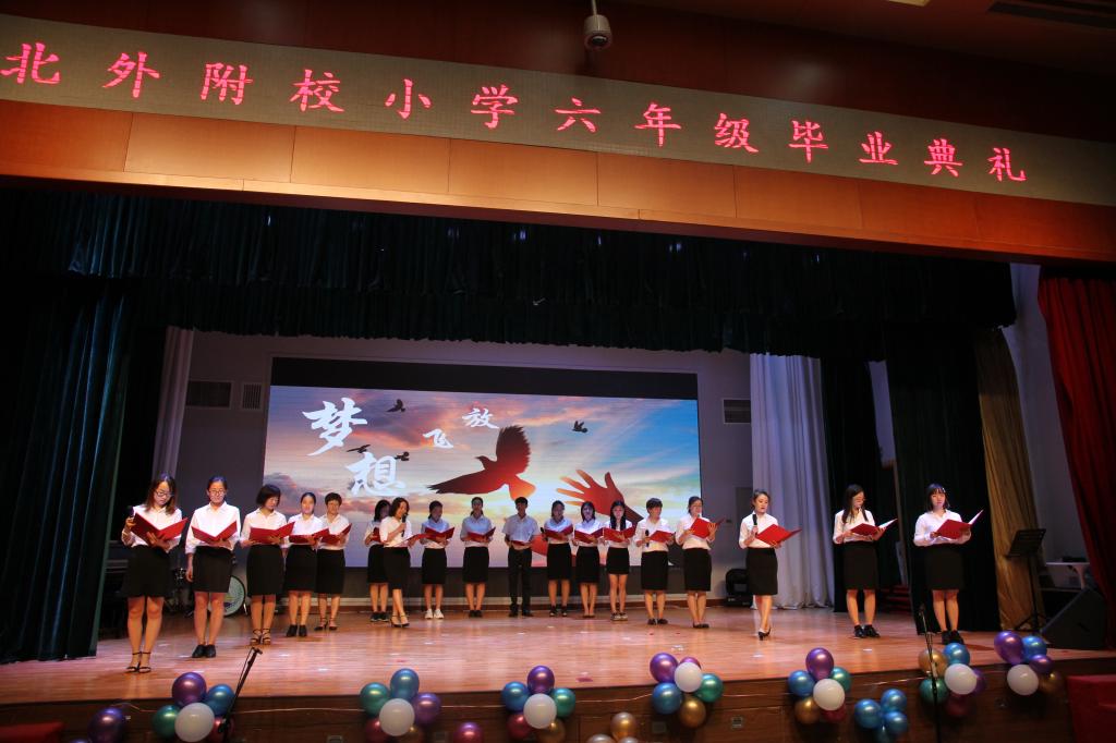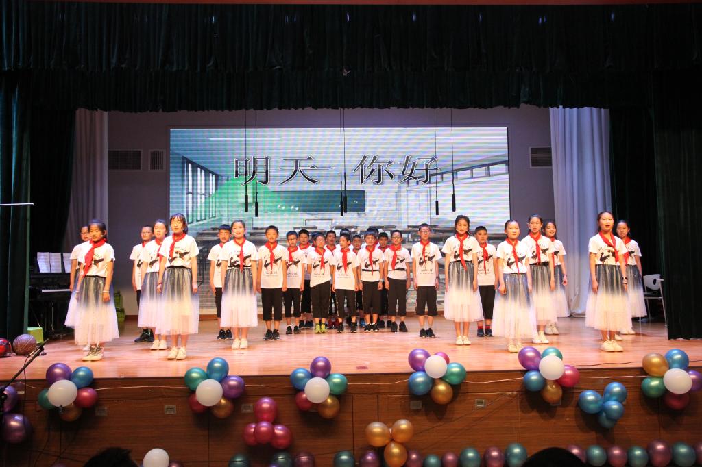 毕业典礼上,六年级各班带来了京剧,舞蹈、合唱、小品、朗诵、乐器表演……,节目精彩纷呈,给在场的每一个人留下了深刻的印象。深情、感恩的歌声在会场久久回荡,也将典礼的气氛推向了高潮。最后,毕业典礼在歌曲“明天,你好”的深情演绎中圆满落下帷幕。