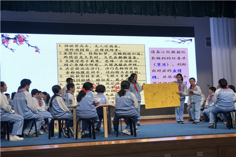在活动课中,我校八(3)中队的一名少先队员担任主持人,通过播放平昌冬奥会“北京八分钟”的精彩片段来激发队员们的民族自豪感和自信心,并引入中国传统节日话题。随后,主持人让队员们根据与节日相关的关键词来介绍我国的传统节日,每小队也领取了任务单,根据分配的传统节日找出对应的古诗词,再通过小组合作的形式让各小队分别做一张个性化的海报,其中包括节日的时间、习俗以及文化内涵。接着,每队由一名同学分享他们所了解的中国传统节日。少先队员们纷纷在发言后做出自己的倡议:“在清明节,我倡议大家不仅要关心自己的长辈,同时也要关怀身边所有需要帮助的老人!”“在端午,我们不仅要缅怀先人,我们还应当走进中国人民抗日战争纪念馆缅怀那些为祖国抛头颅洒热血的革命先烈们!”