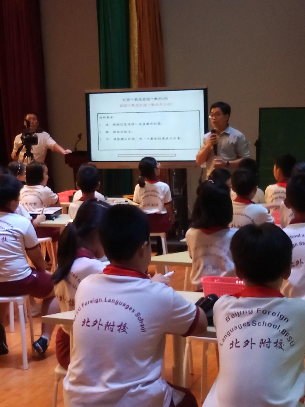 6月17日,小学数学特级教师工作室研讨会在我校召开。下午第七节课中关村三小的郭学锐老师在国瑞厅为四年级献上了一堂精彩纷呈的数学课——《分数的意义》。