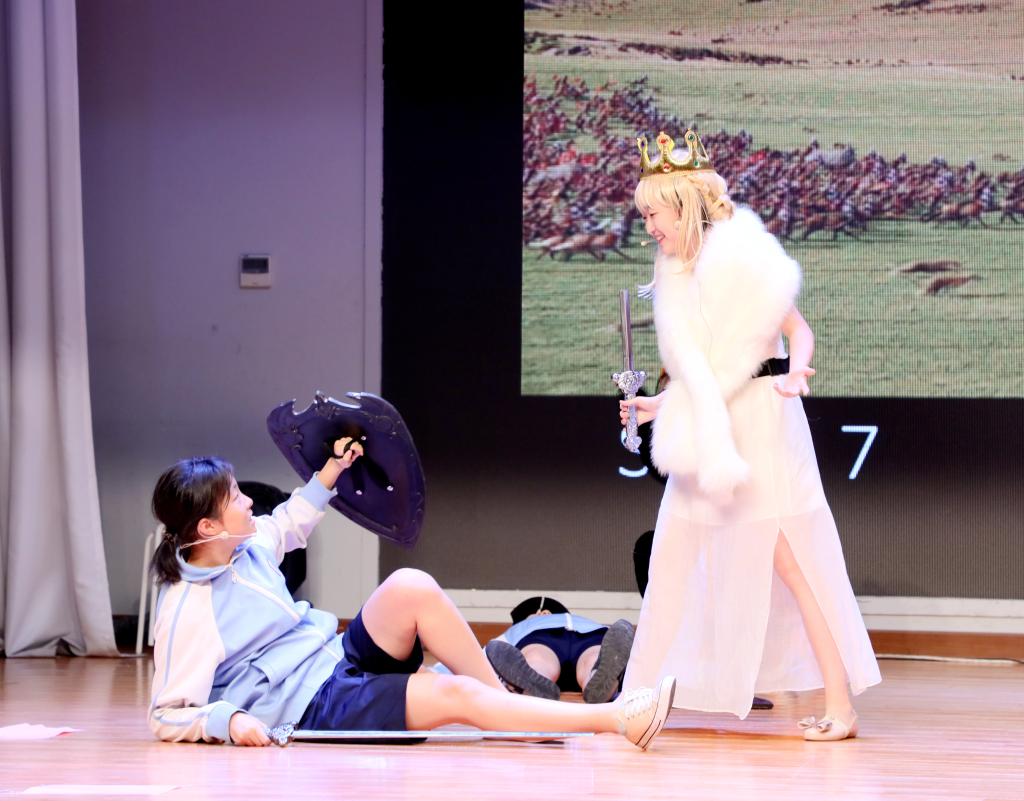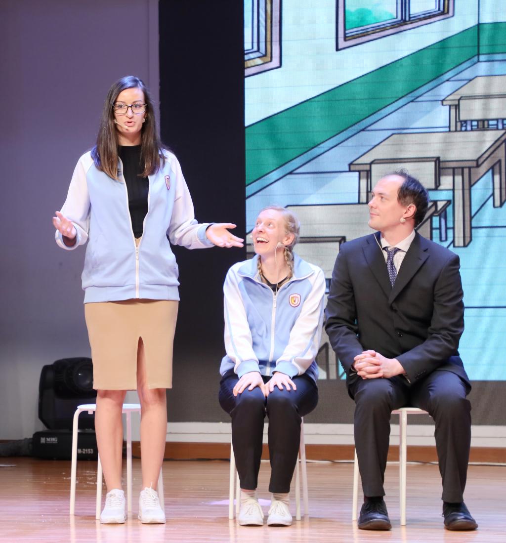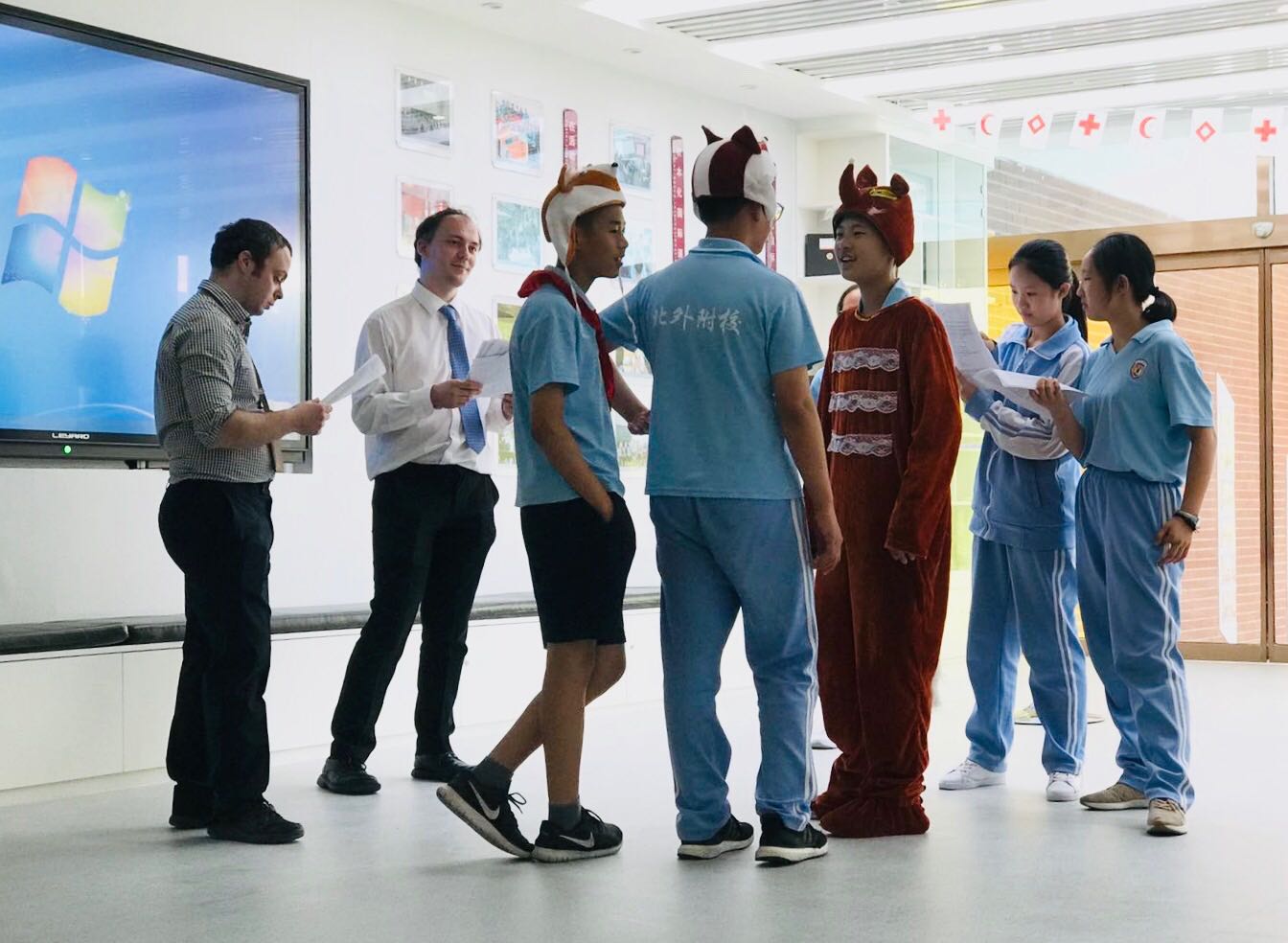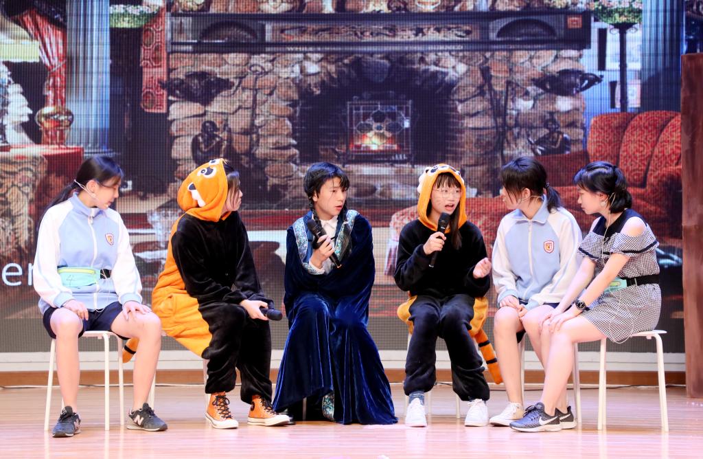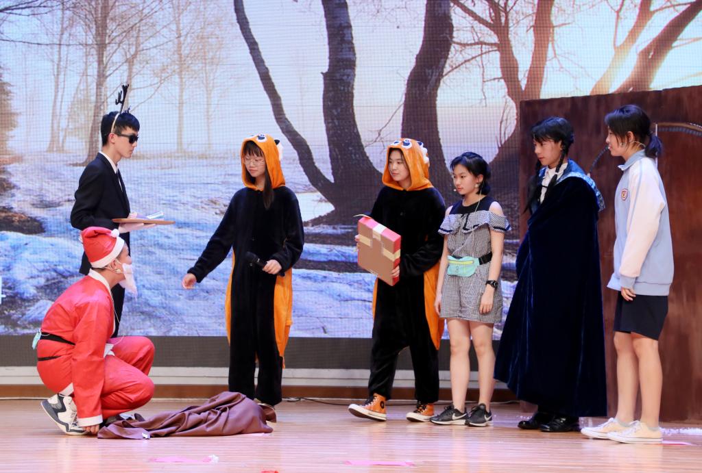 随后,宋莉莉老师和5名外教老师也给大家带来了非常精彩的情景剧表演,同学们看见他们喜爱的老师们上场,惊喜万分、全场欢呼,将整场活动推向了最高点。