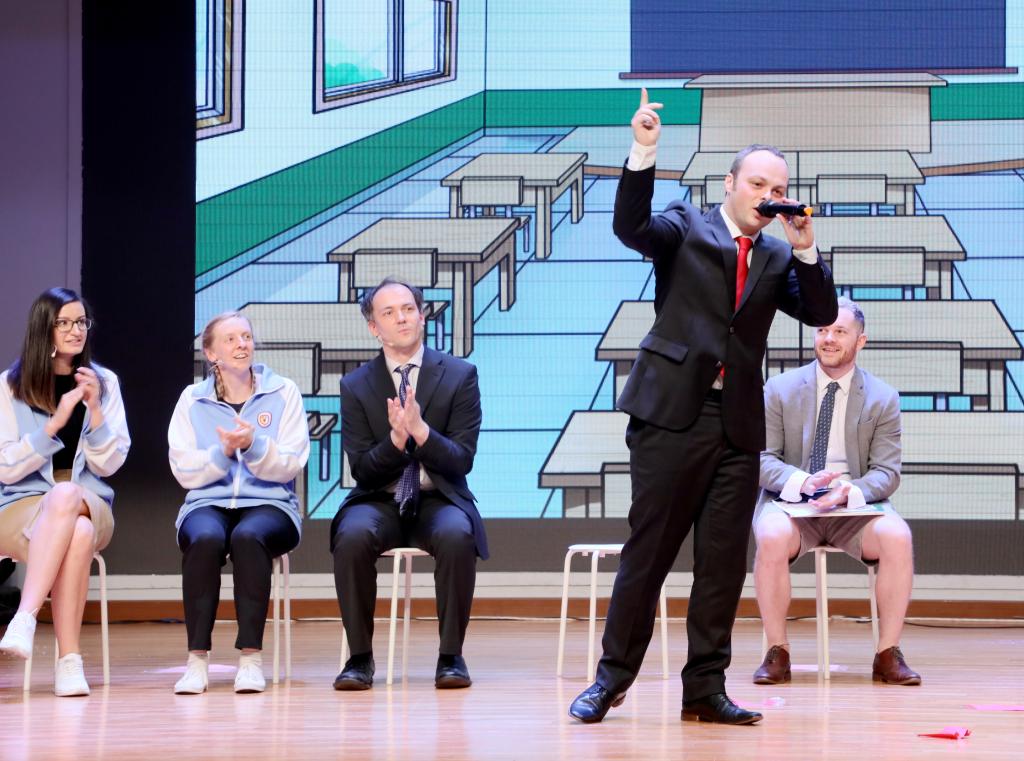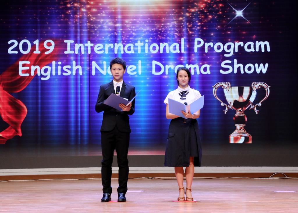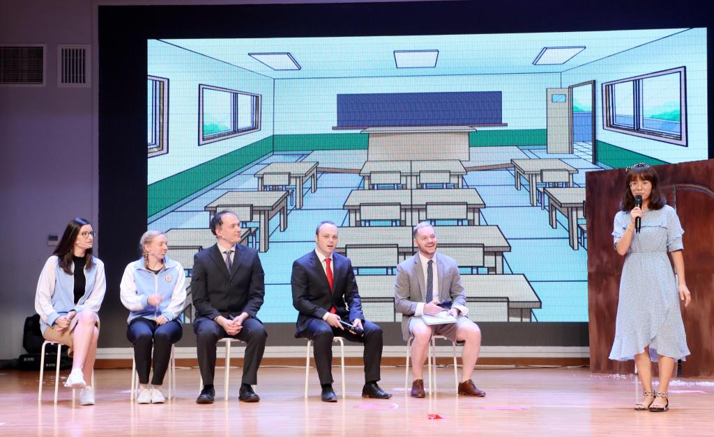 6月19日中午,我校初中高端英语项目戏剧展演在国瑞厅拉开帷幕。初一、初二全体高端英语项目班级师生参加了本次活动,5名外教担任本次戏剧展演的评委,初中执行校长杨磊出席本次活动。