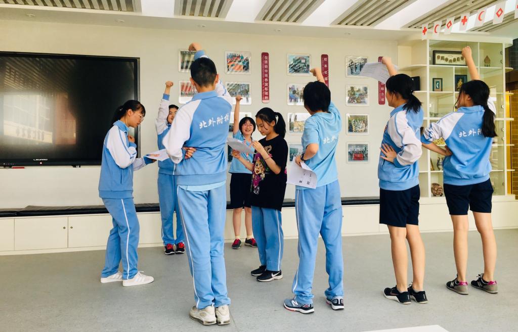 在前期初中高端英语项目组也进行了本次戏剧展演的海选活动,在海选活动中初一、初二英语项目的全体学生积极参与,选出了本次展演活动的演员们,随后外教又利用中午的休息时间对所有参演的同学进行了详细的指导和英语一一培训。通过培训提升学生多元化的能力,如:在对戏剧理解的基础上使用可以润色表演的英语交流进行角色的揣摩、发挥与表现;在表现过程中,扩大学生的想象力和对剧情的诠释力。并通过丰富的语言、音乐、场景、肢体动作等方式,挖掘学生们的艺术天性和语言能力,激发其想象力、创造力和自我认知。通过这种方式,能够很好地鼓励学生们勇于表达自我,塑造乐观性格、积极自信的优秀品质。于此同时,对培养学生的团队协作能力、沟通能力和批判性思考能力也起了非常重要的作用。