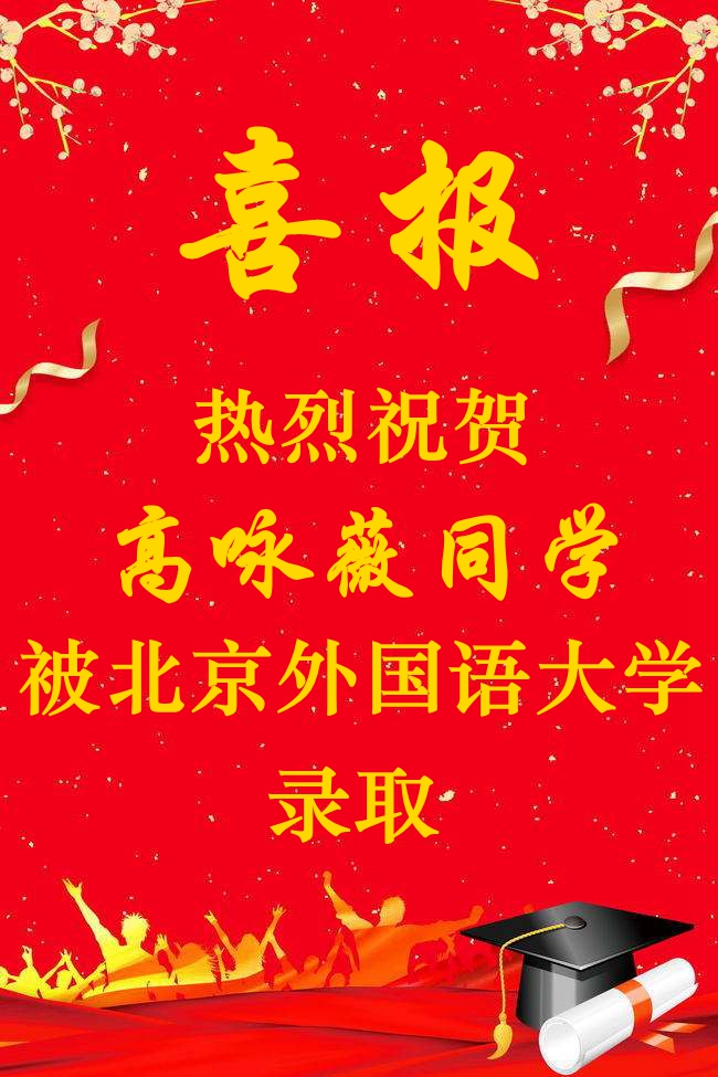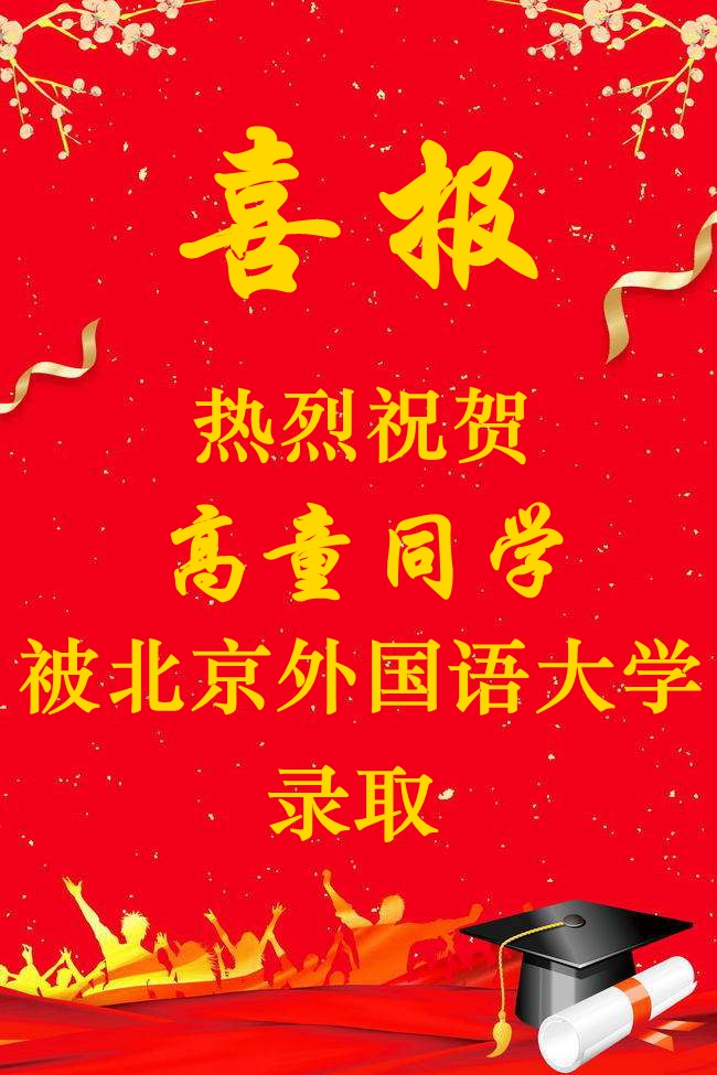 北外附校2019高考录取喜报:高童、高咏薇同学被北京外国语大学录取;方慈蓉同学被南京师范大学录取;邓梓堰同学被北京电影学院录取;高郅轩被北京警察学院录取……(未完待续)