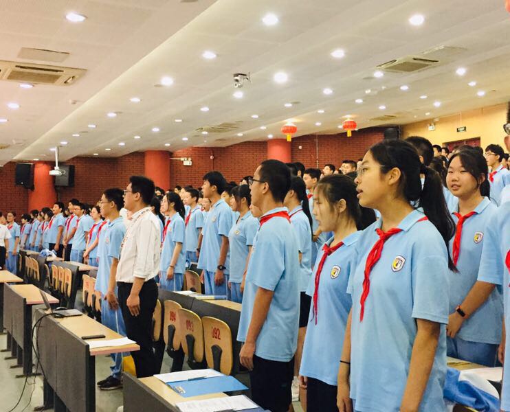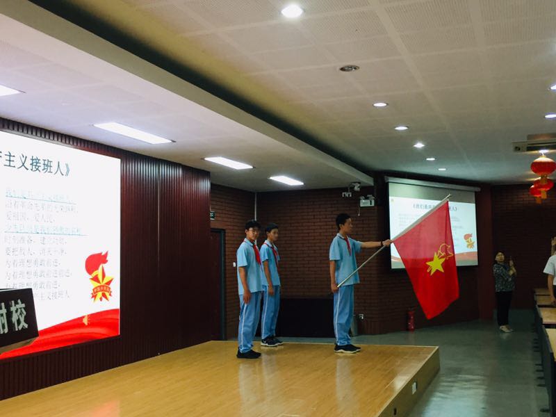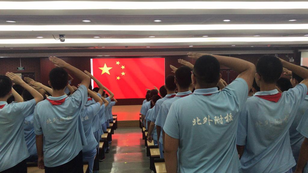 今年是中国共产主义青年团成立97周年,为了深入开展“一学一做”教育实践,提升团员队伍的先进性,北外附校初二年级在第二阶梯教室举行了“青春心向党 建功新时代”主题离队建团仪式暨主题团日活动。初二年级全体260名师生共同参加此次仪式,共同见证这一时刻,告别象征着浪漫纯真童年的红领巾,迈向青春蜕变的新起点。