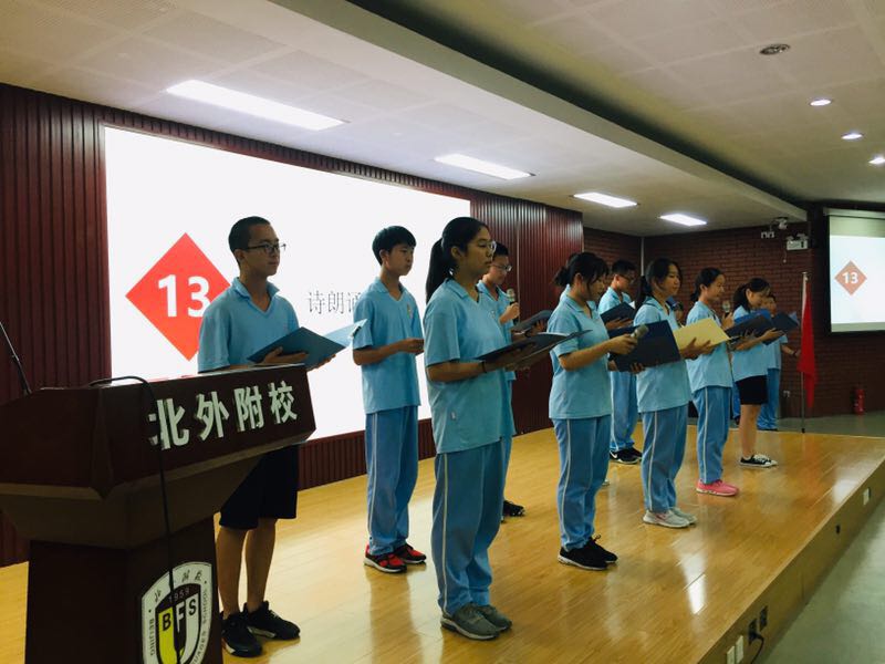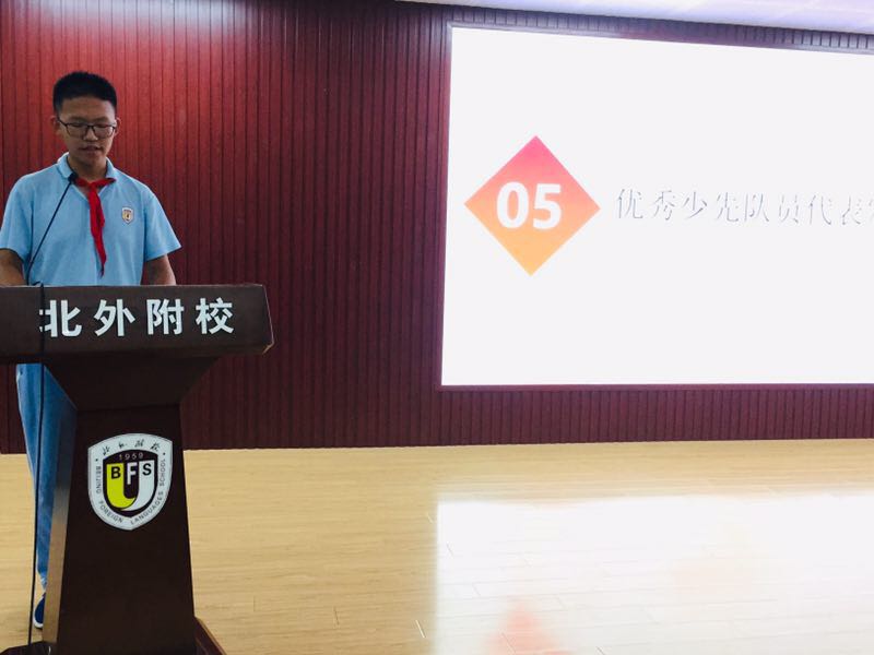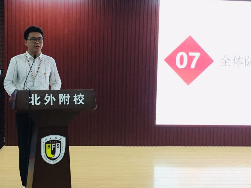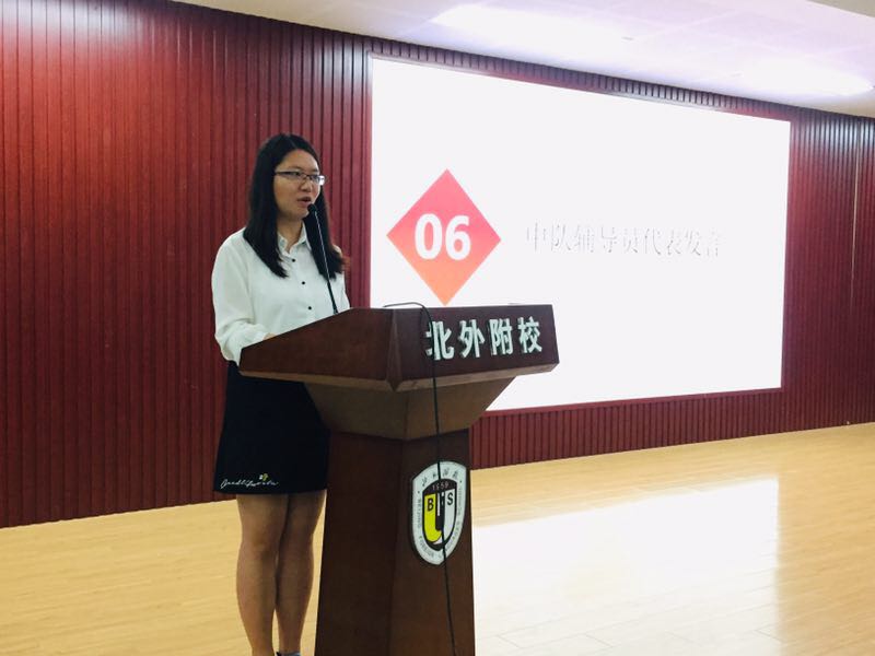 接下来,同学们摘下了朝夕相伴的红领巾,标志着自己正式离队。同学们珍藏起自己的红领巾,珍藏起在少年先锋队中度过的美好时光。不过这并不意味着结束,这是一个新的开始。告别了少先队队旗,校团委副书记潘铎轩老师宣读了《关于北外附校初二年级建立团支部与入团的决定》。