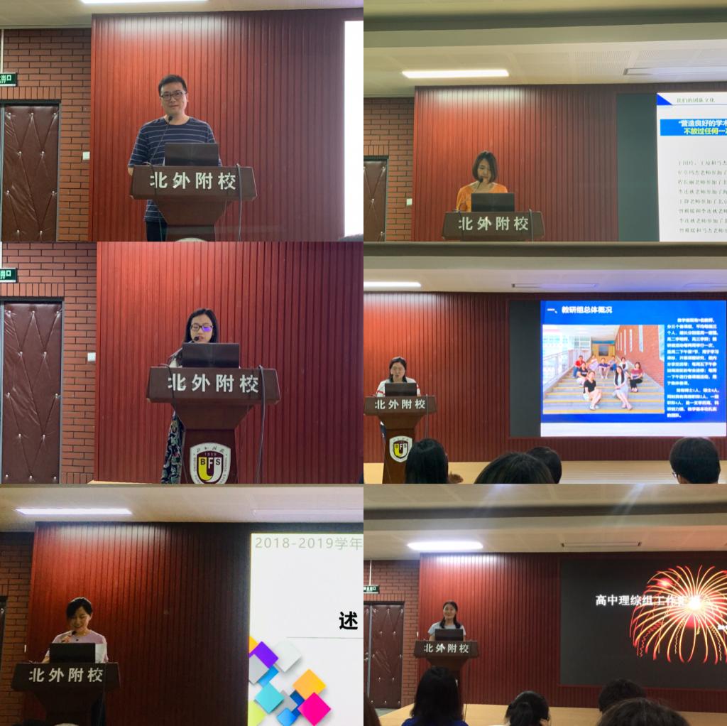 接下来,高中语文组、数学组、英语组、文综组、理综组和复语组6位教研组长对本学期的工作作了汇报,详细介绍了本教研组在常规工作、教师获奖情况、教师主动提升专业能力、课题研究工作及学科竞赛工作等方面的成果。各教研组一直坚持齐力奋进、团结互助、求实创新,力求在学生培养、科研课题等方面取得更大突破。