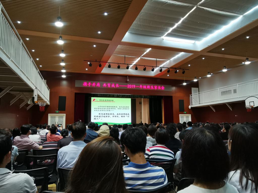 为了帮助一年级新生尽快适应小学校园生活,为了引导家长掌握更多教育孩子的好方法,为了形成家校互通的良好开端, 7月11日下午,北外附校举办了2019“携手并肩 共育成长”一年级新生家长会。参加此次会议的有我校校长林卫民、小学执行校长刘宏利、小学教学主任宋花磊、年级部主任王兴兴以及全体一年级家长。本次会议由宋花磊主持。