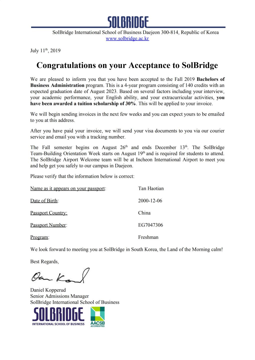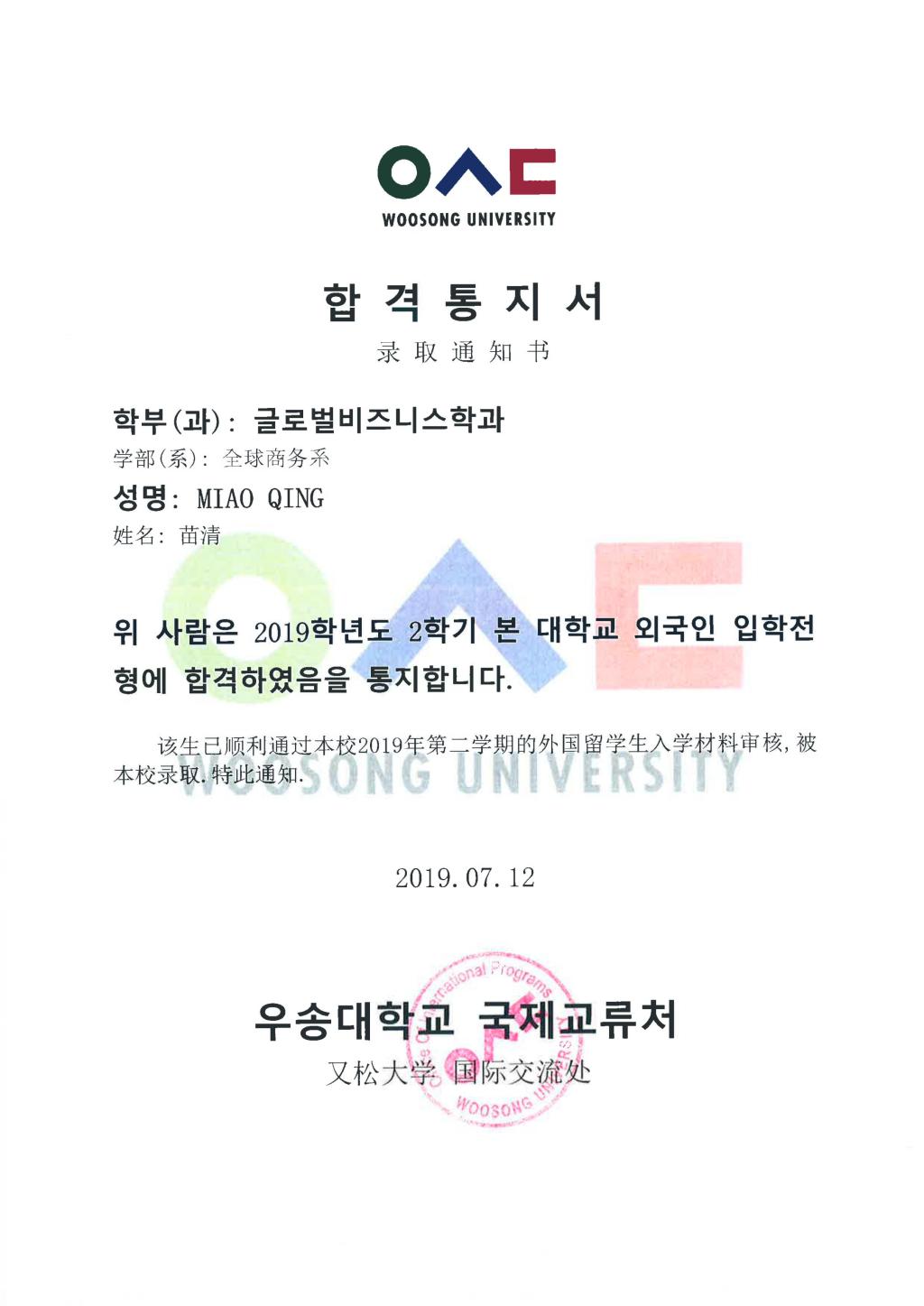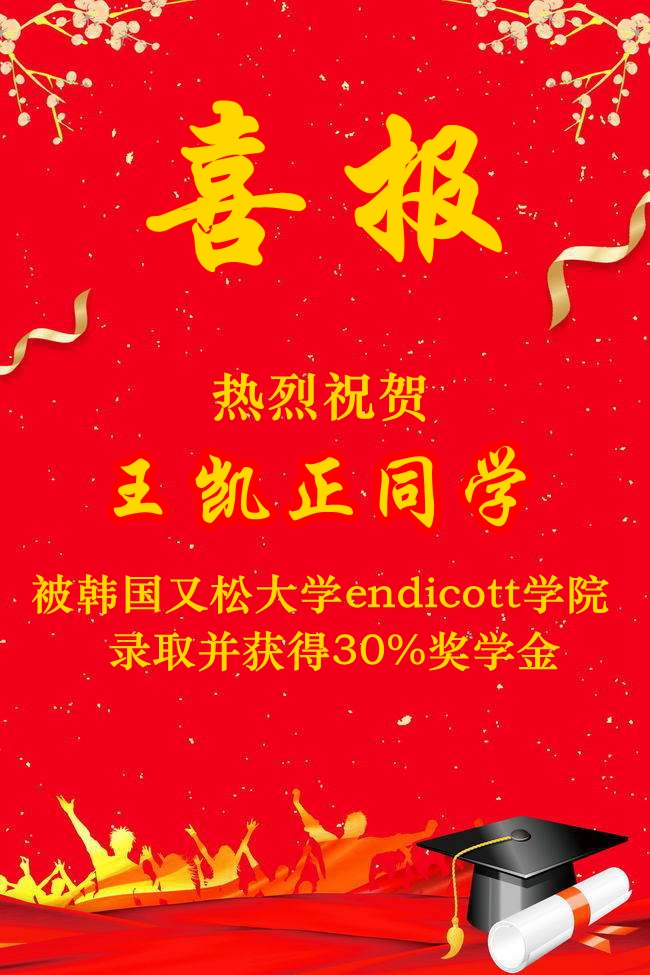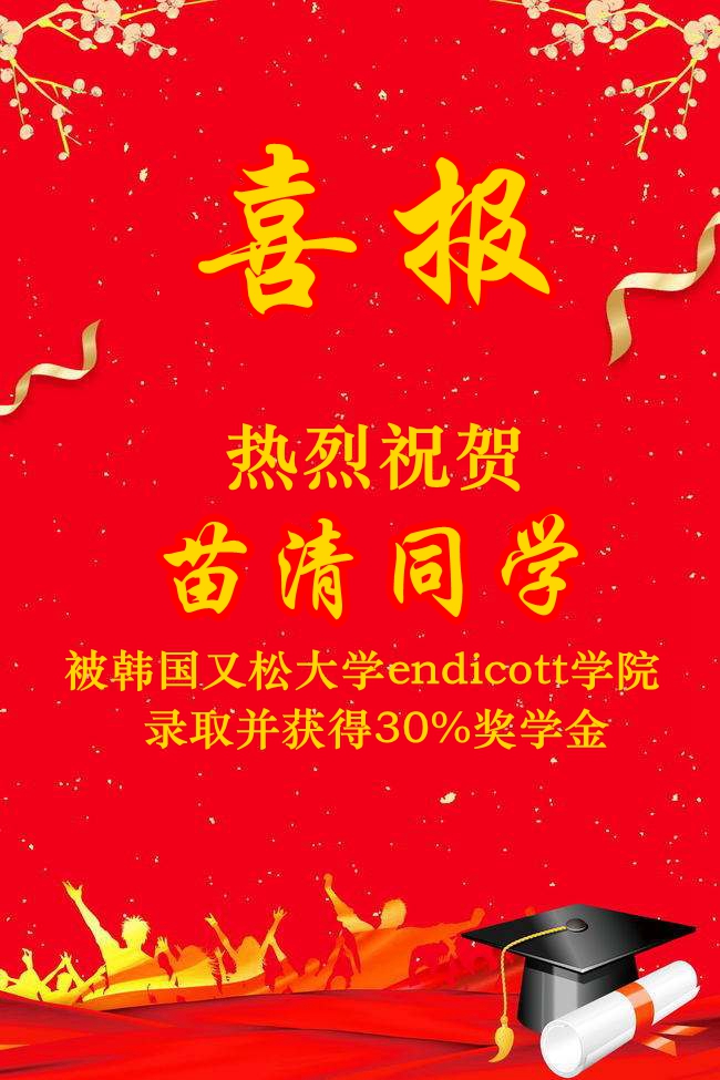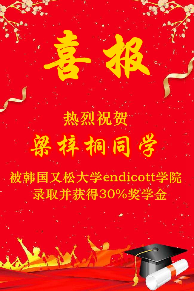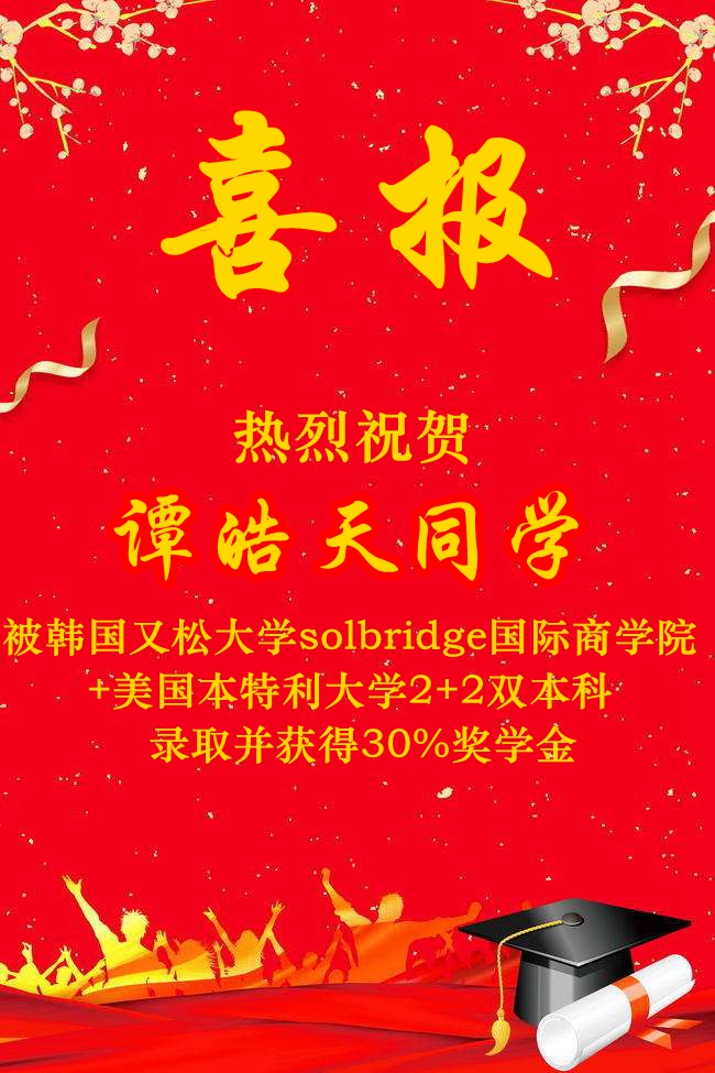 北外附校2019高考录取捷报频传,继高童、高咏薇同学被北京外国语大学录取,陈子悦同学被北京科技大学录取,方慈蓉同学被南京师范大学录取,邓梓堰同学被北京电影学院录取,孙鼎龙同学被北京体育大学录取,金洺羽同学被陕西科技大学录取,高郅轩同学被北京警察学院录取,胡缤丹被北京联合大学录取之后,7月12日又传来喜讯:屈弋力被北京航空航天大学(“985”)+北京工业大学(“211”)双培计划录取,谭皓天同学被韩国又松大学solbridge国际商学院+美国本特利大学2+2双本科录取,并且获得30%奖学金;苗清、王凯正、张逸然、梁梓桐四位同学被韩国又松大学endicott学院录取,并且获得30%奖学金减免……(未完待续)