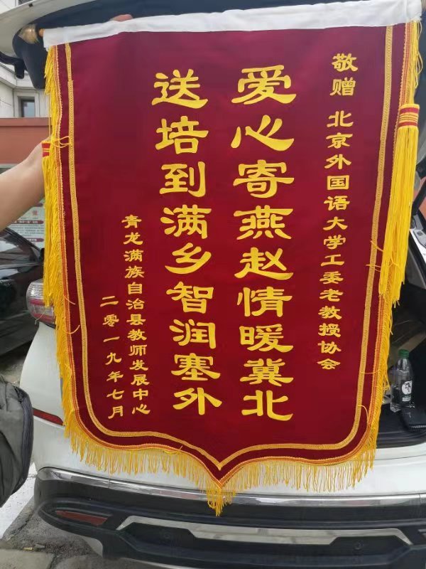 暑假期间,为践行教育扶贫,北京外国语大学关工委,老教授协会组织了一只由前教育司司长、国家老干部局领导、北京外国语大学老教授、外研社专家及中学优秀教师组成的支教队伍,于2019年7月15日至19日赴河北省青龙满族自治县开展暑期英语骨干教师培训活动。本次支教在行前就精心安排好了授课内容,包括“如何当好英语老师”,“中学教学规划”,“英语智能学习平台”等开展集中培训。我校初中英语教师吴梦娟和刘娟作为支教成员参加了此次为期一周的教育扶贫活动。