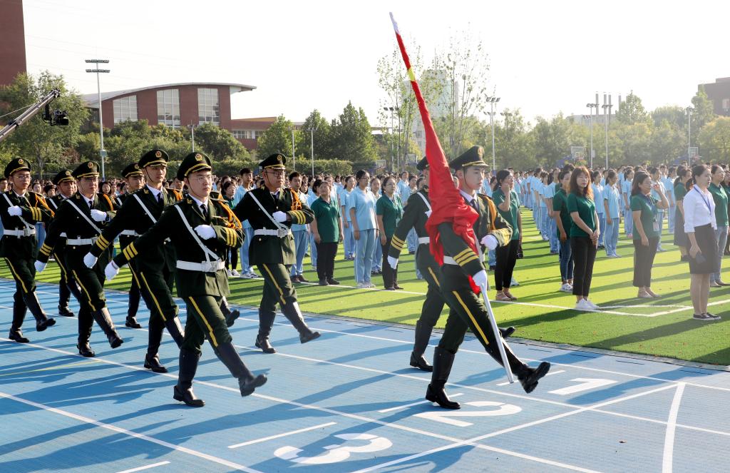 升旗仪式后,全体师生观看视频《礼赞新中国,奋斗新时代》。视频全面展示了新中国成立70年来,特别是党的十八大以来,我国在政治、经济、文化、民生等方面取得的辉煌成就,充分展现了我国人民进入新时代拼搏进取、开拓创新的精神风貌。