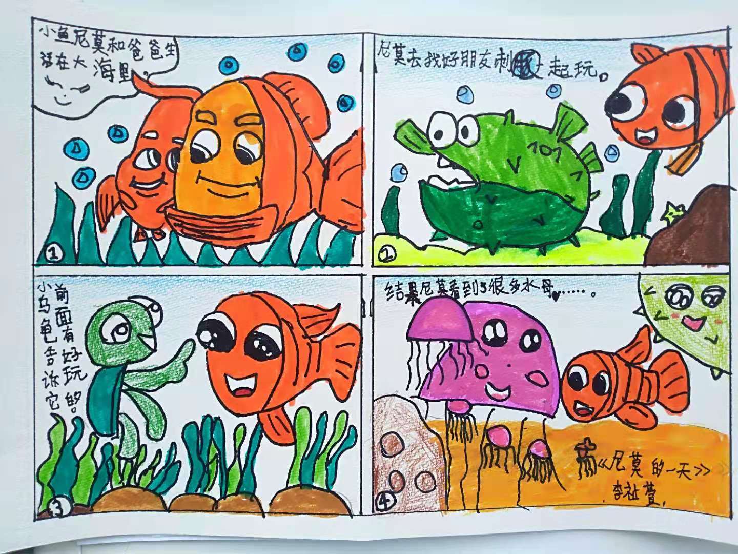 二年级的孩子们完成打卡阅读、绘本创作或四格连环画创作。各班对阅读打卡天数进行排名,评比出班级的“阅读小达人”,激发了孩子们坚持阅读的热情。在绘本创作与四格连环画创作中,孩子们展开丰富想象,创作出许多充满童真、童趣的作品。