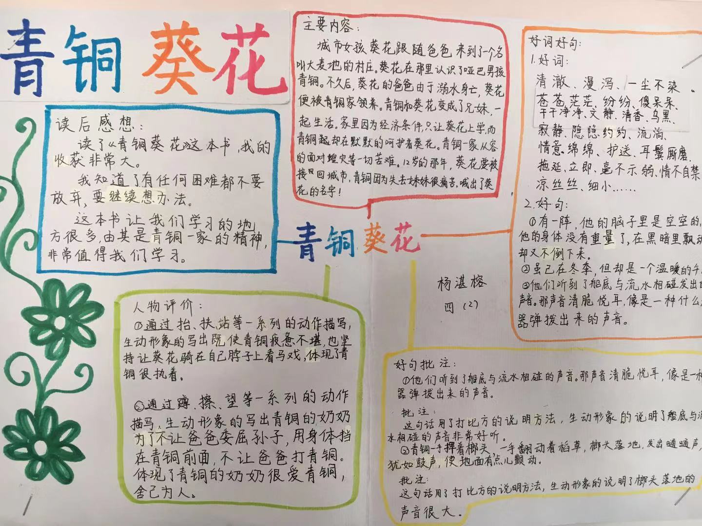 三年级的孩子们以阅读和习字为主,结合自己阅读的课外书籍写阅读感悟。一张张读后感整洁工整,内容丰富多彩。既丰富了孩子们的课外知识,拓宽了视野,又培养了孩子们记录读书感悟的习惯。