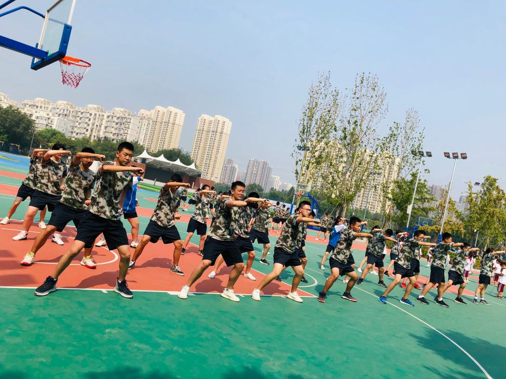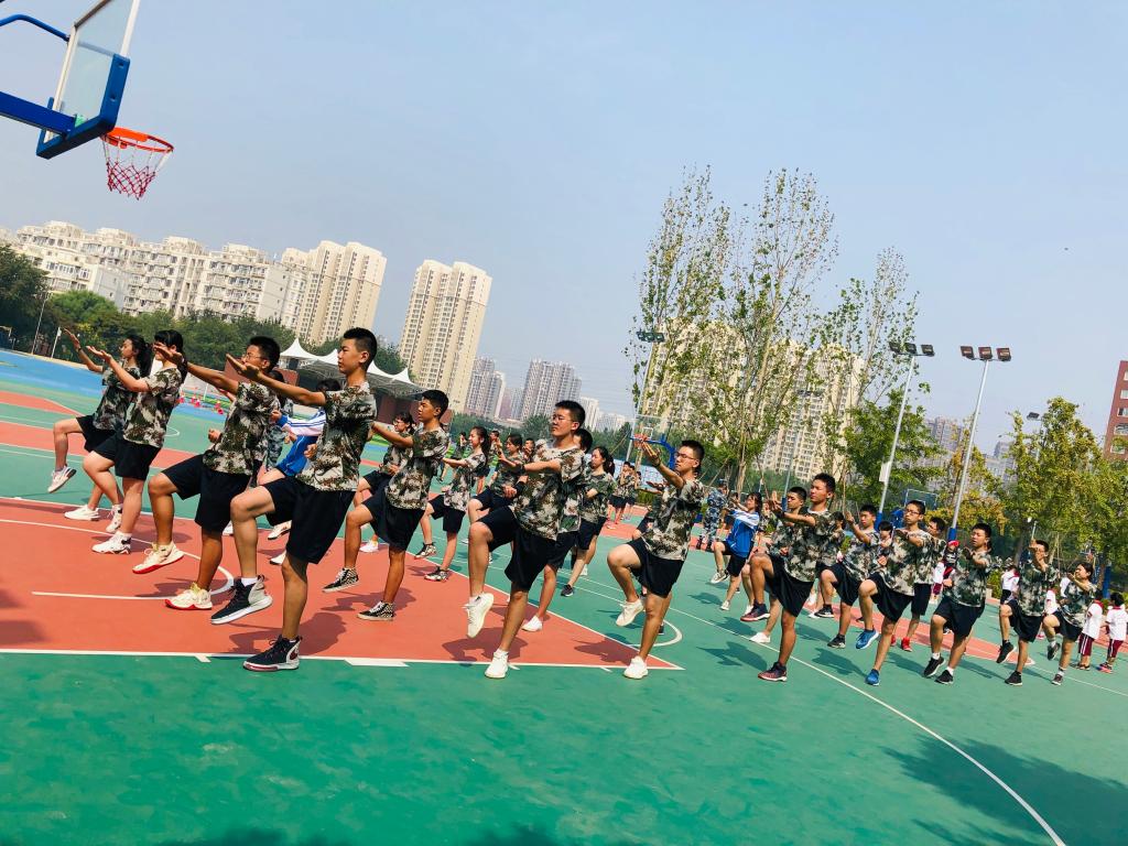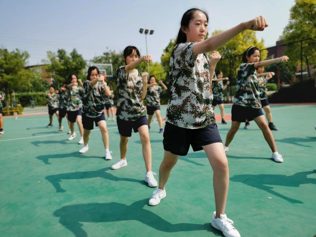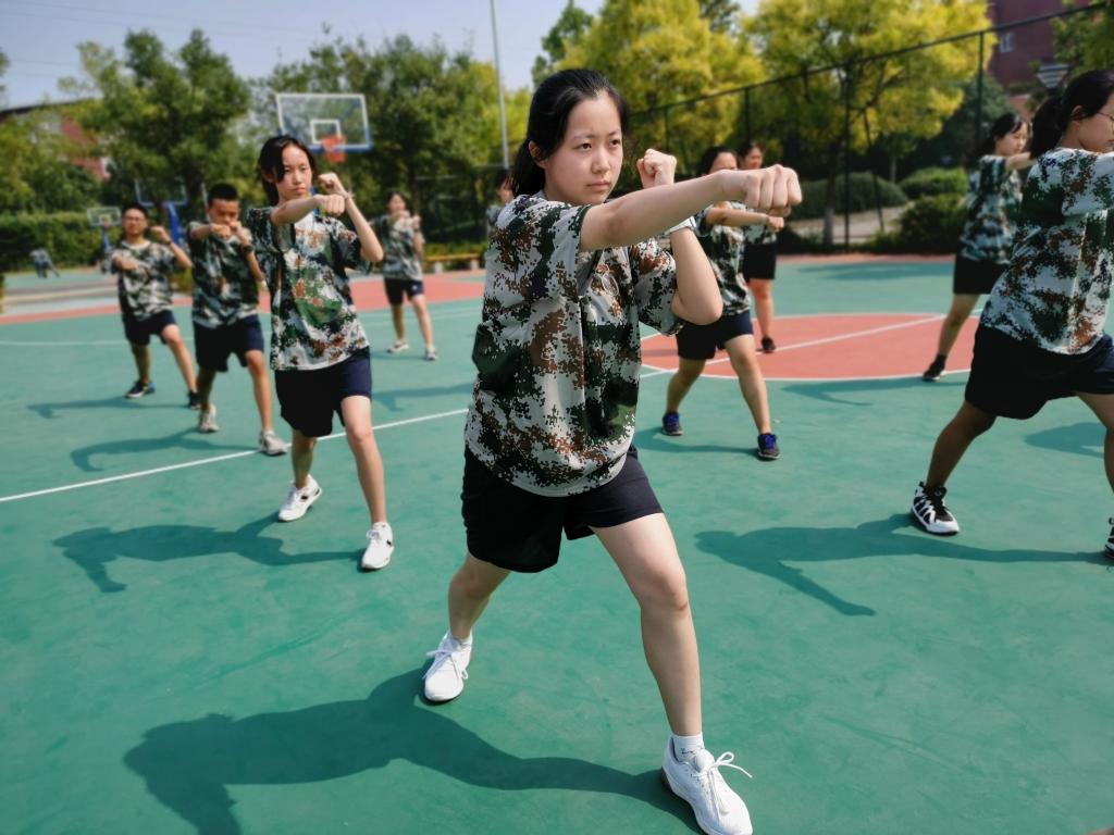 @高一(2)班 张浩天:军体拳的一声声呐喊,喊出的不仅是军工口号,更是我们二班自信、团结的力量与气势。我们明日会再接再厉,不失老师与教官对我们的信任。