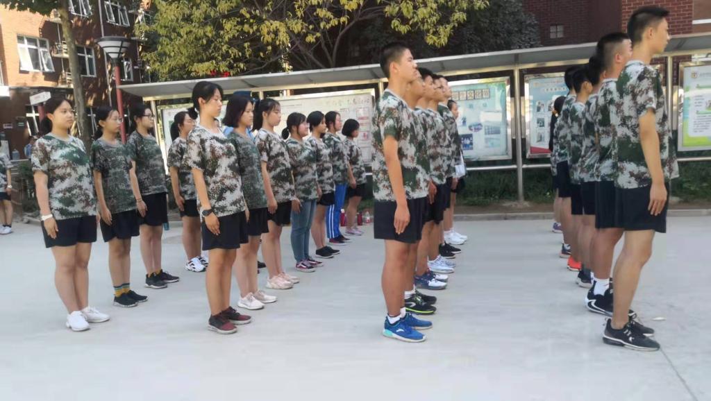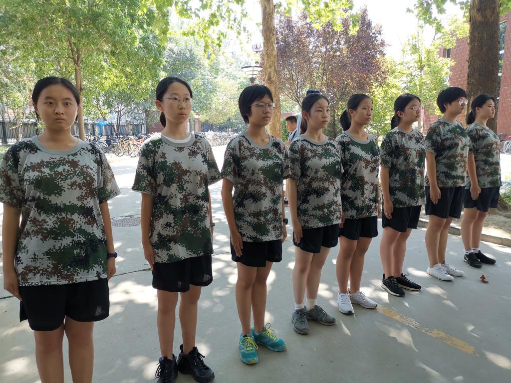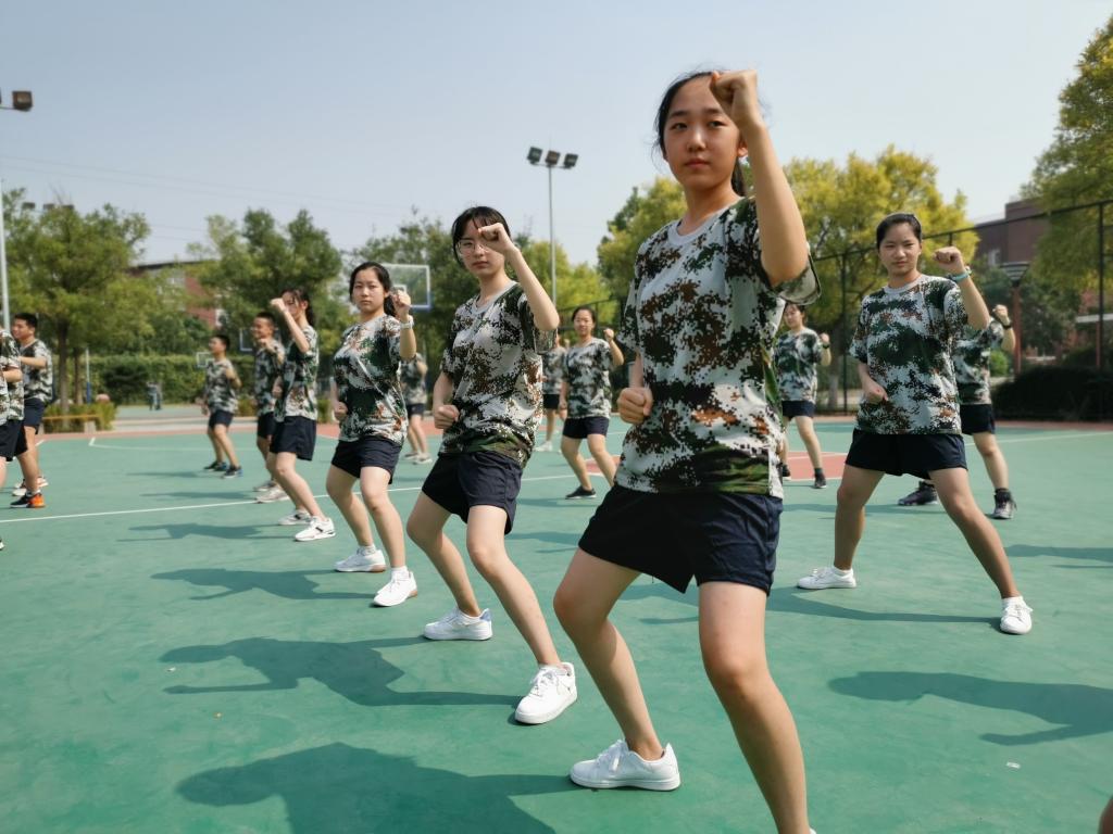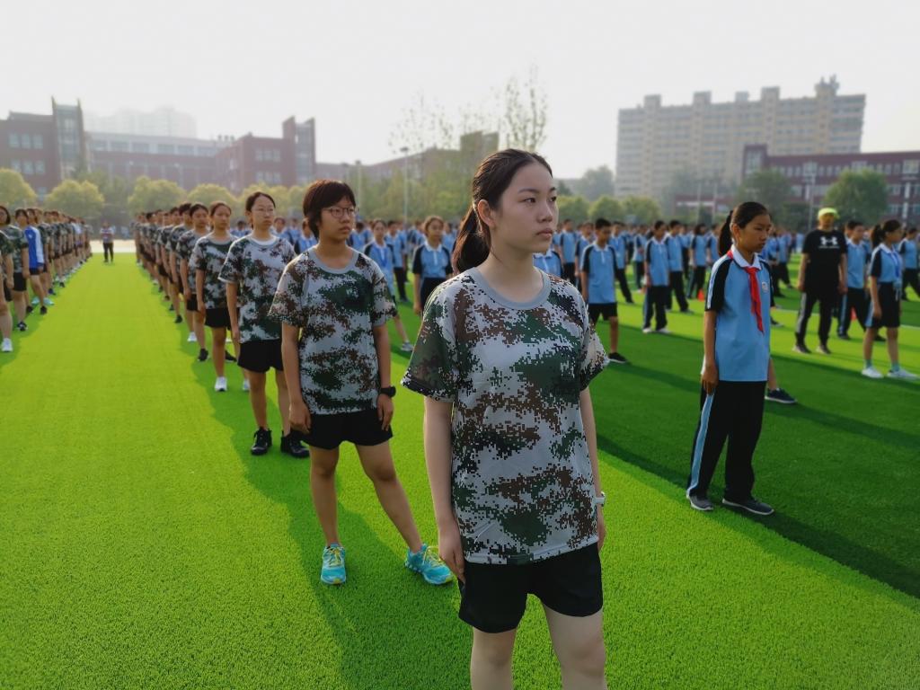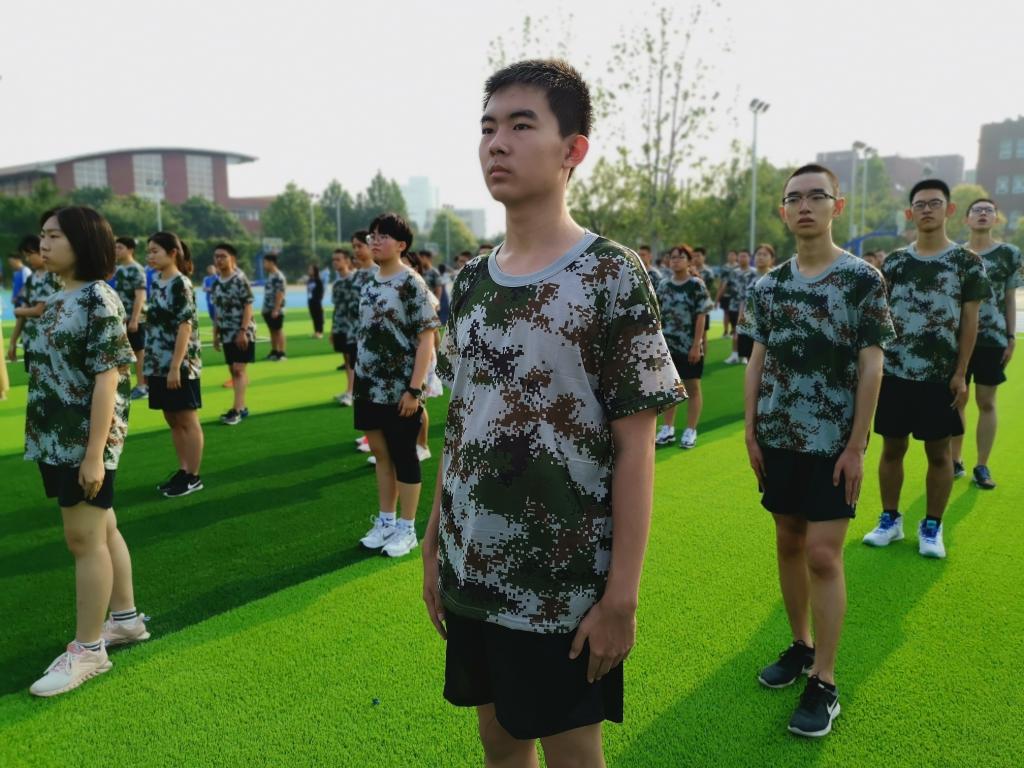 @高一(6)班 胡伊菲:军训,意味着我们升入了高一年级,告别了初中年少的懵懂,带着好奇心和对未来的无限憧憬开启了我们为期5天的军训历程。起初,我们站在大太阳下,说到军训,第一个便会想到站军姿,随着时间的消逝,汗水顺着我们的脸颊大滴大滴的往下落。枯燥,乏味,肩也酸,背也痛,却不敢松懈。“四班的,来一个,让你唱,你就唱,扭扭捏捏不像样,像什么?像姑娘。”又是休息时间,到了我们最喜爱的“拉歌”环节,目的呢,就是起哄到别班开口唱歌为止。大家兴致极高,口号响亮又整齐划一,还会很“幼稚”地举起右手假装向对面扔“手榴弹”,嘴里还发出“嘭”的一声,大家都笑得不亦乐乎。气势上我们显然赢了,或许赢在两班一起人多力量大,也或许赢在了是在别班出其不意之时发起的“进攻”,导致他们出现忘词等现象。但军姿及步伐也不能输给他们。“团结就是力量,这力量是铁,这力量是刚……”在大家整个响亮的歌声中,结束了这一天的训练。