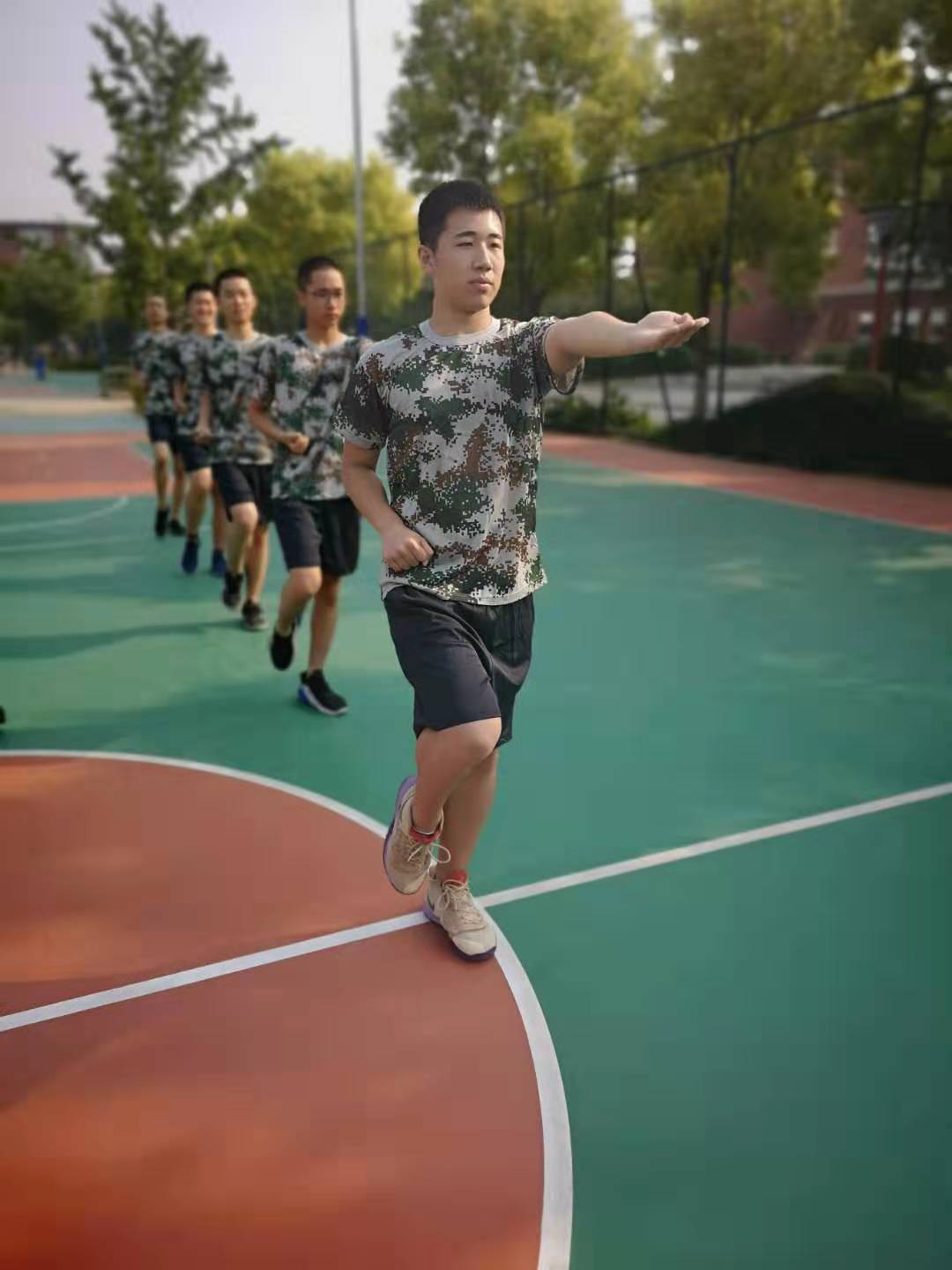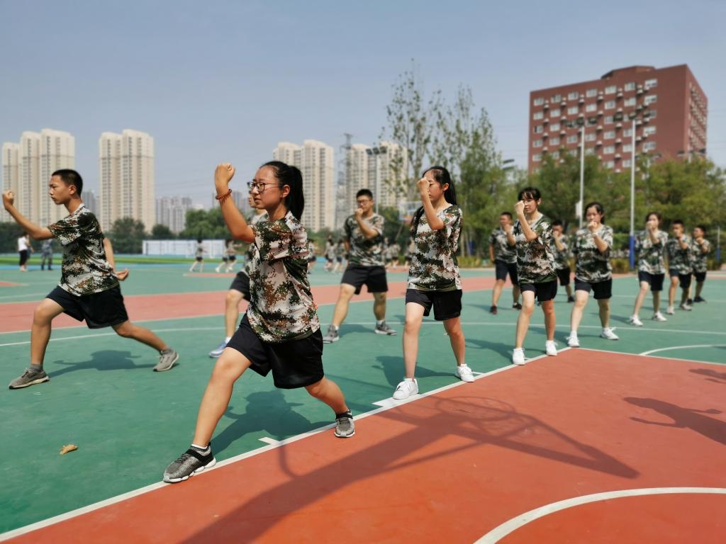 @高一(6)班 田逸苇:今天是军训第三天,我们在齐步走的基础上还练习了齐步跑和军体拳。