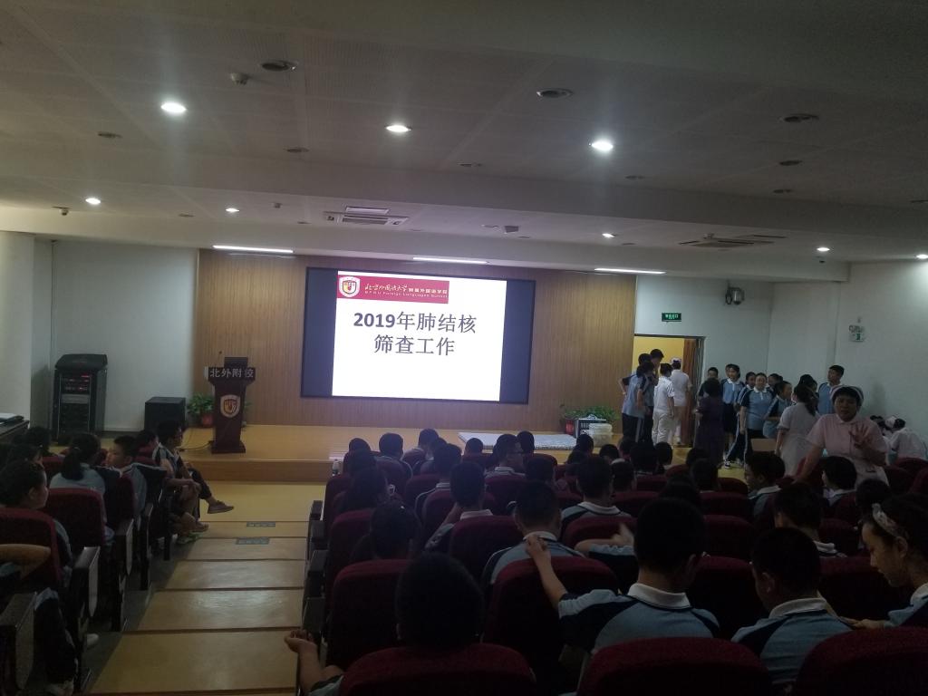 为进一步做好结核病防控工作,创建无结核病的和谐校园,根据海淀区卫健委、海淀区教委新生结核病筛查工作安排,2019年9月4日,由上地医院医务人员具体实施,我校医务室配合,针对初一寄宿生、高一全体350名学生进行结核病筛查。