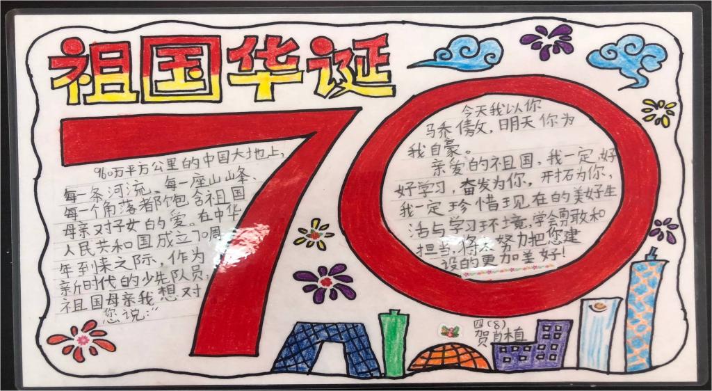 在她的倡导下,同学们都认识到我们的小家离不开大家,只有祖国母亲越来越强大,才会有我们小家的幸福生活。在中华人民共和国成立70周年到来之际,作为新时代的少先队员,祖国母亲我想对您说,我们一定珍惜现在的美好生活和学习环境,学会勇敢和担当,将来努力把您建设的更加美好!