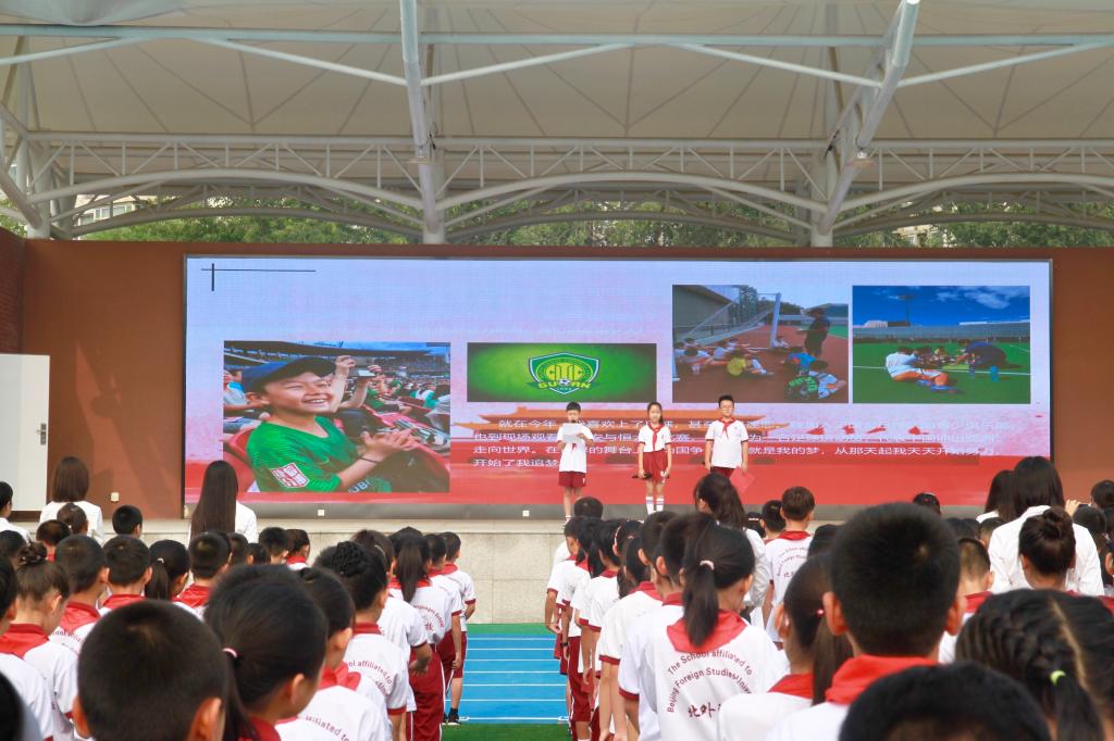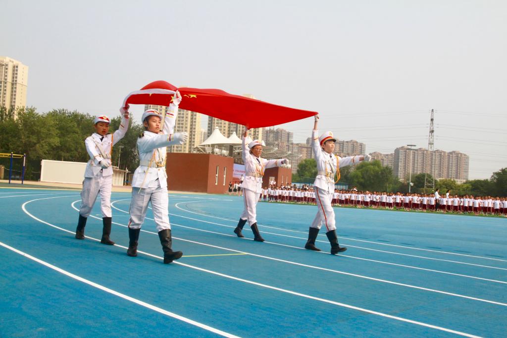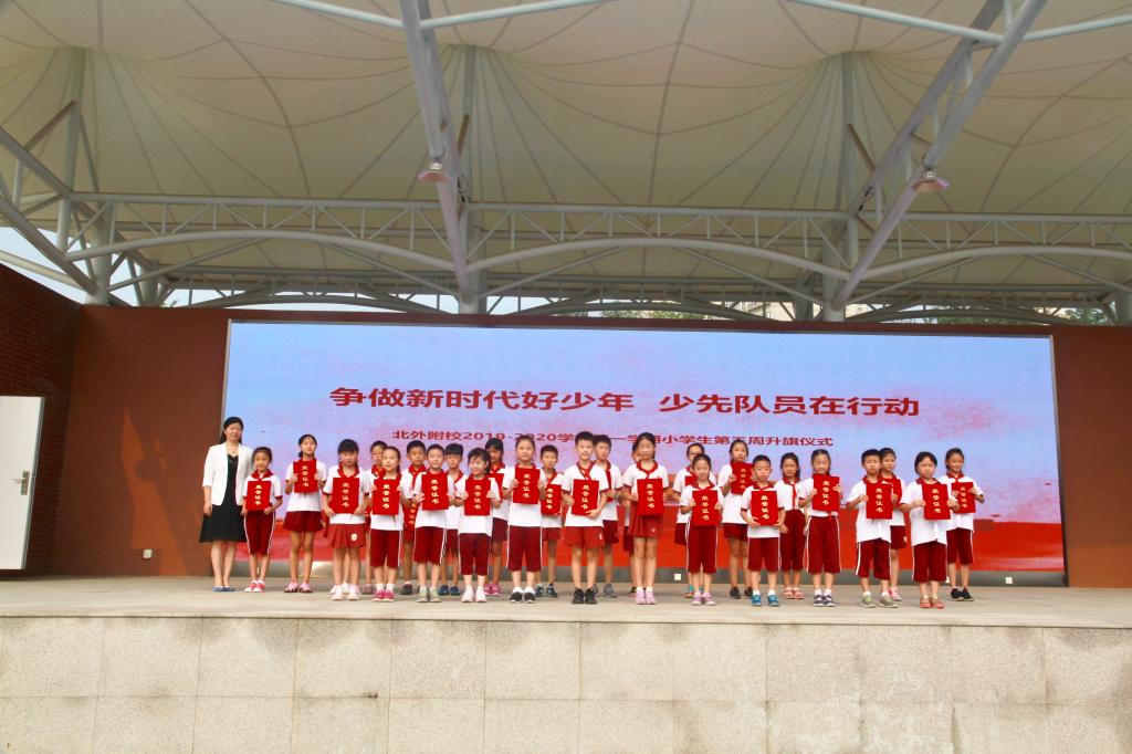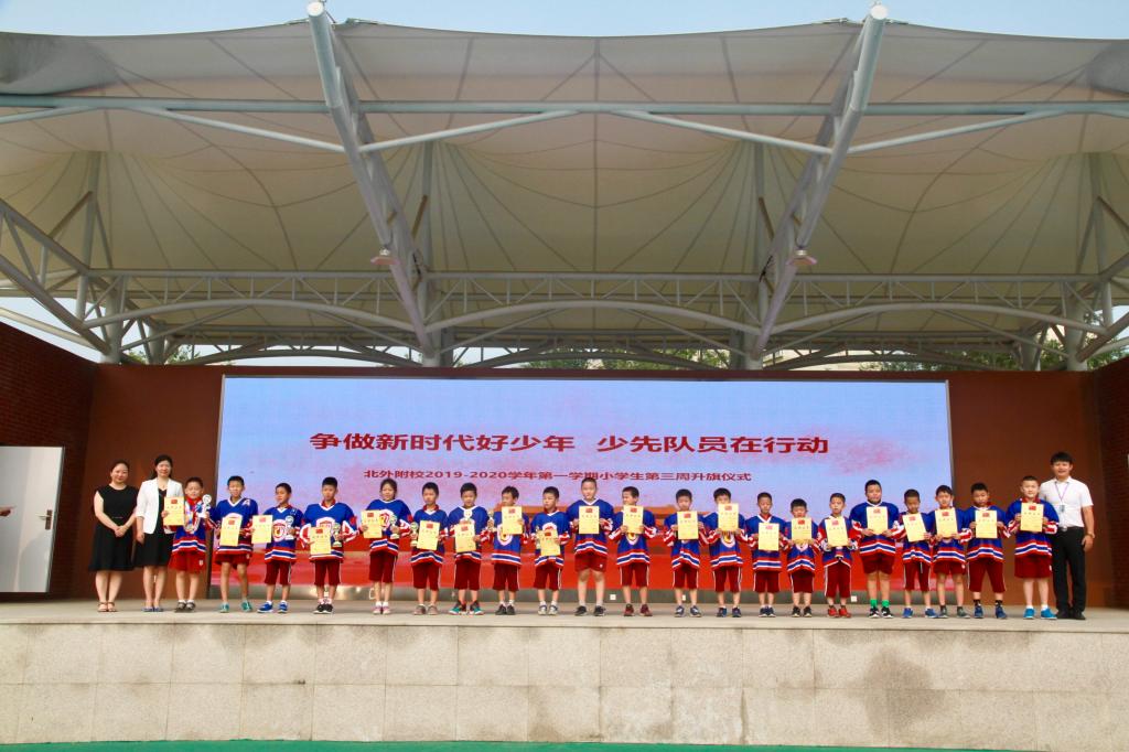 2019年9月9日,北外附校2019-2020学年第一学期小学生第三周升旗仪式在操场如期举行。