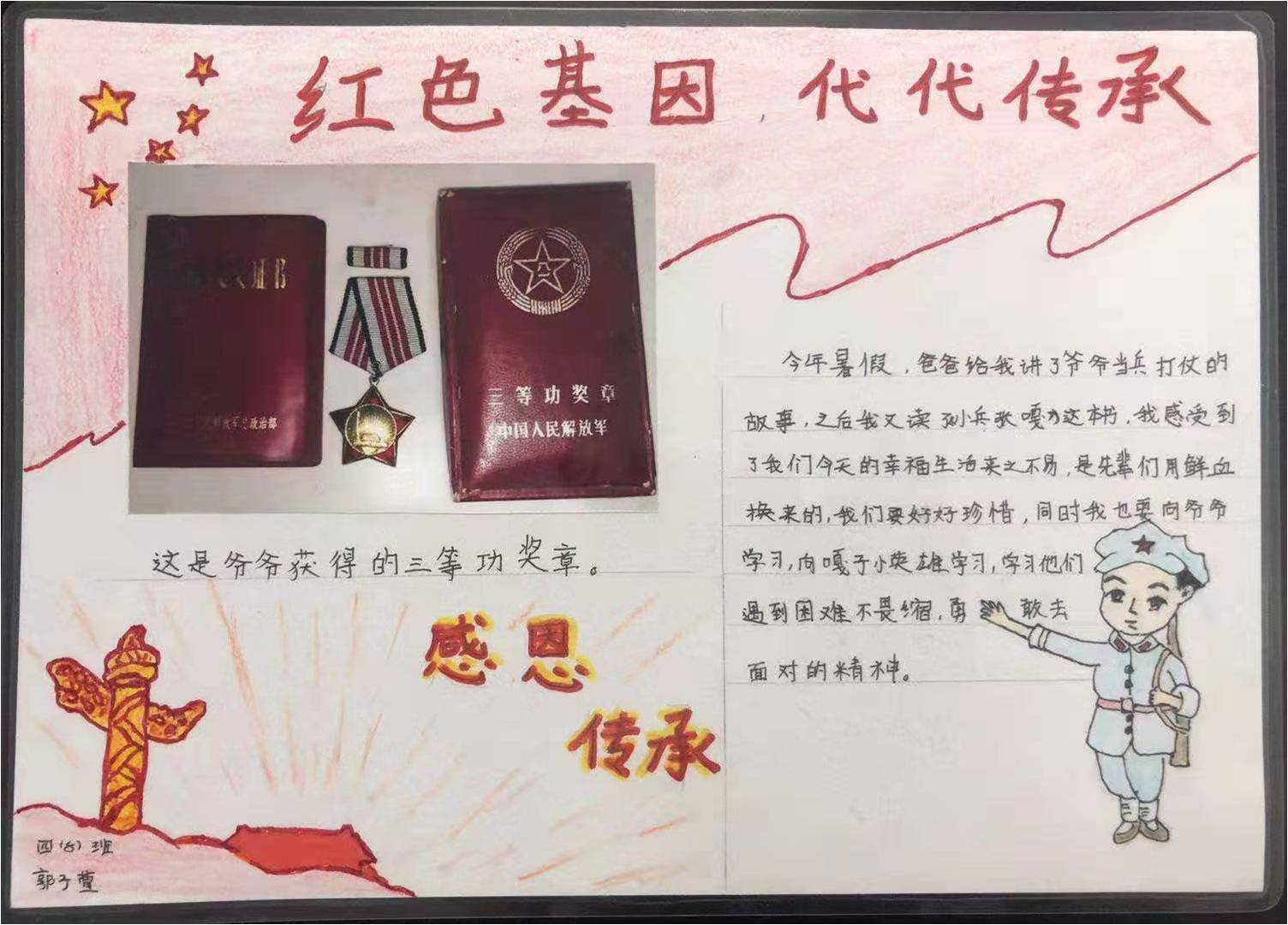 四年级八班的贺肖植,和大家分享了她家的家风,那就是——忠孝传家远,耕读继世长。所谓忠,就是忠于国家,忠于共产党;孝,就是孝顺父母,对朋友诚信;耕,或曰经,就是要立德树人;读,就是要重视教育,多读书。 正因为代代传承的家风的影响,她从小立志做一个高尚的人,将自己的青春梦根植在中国的大地上,努力奋斗,服务国家,奉献社会,不求回报。