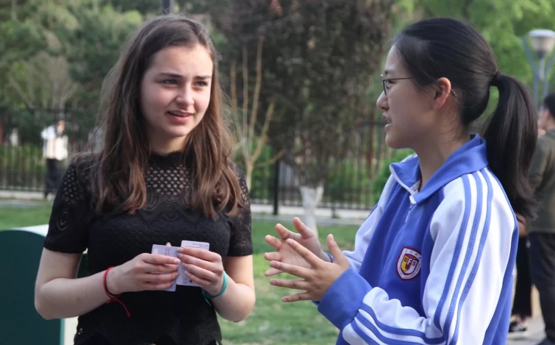 北外附校校园里,弥漫着浓厚的“全外文、沉浸式”外语学习的氛围。李文霞 摄