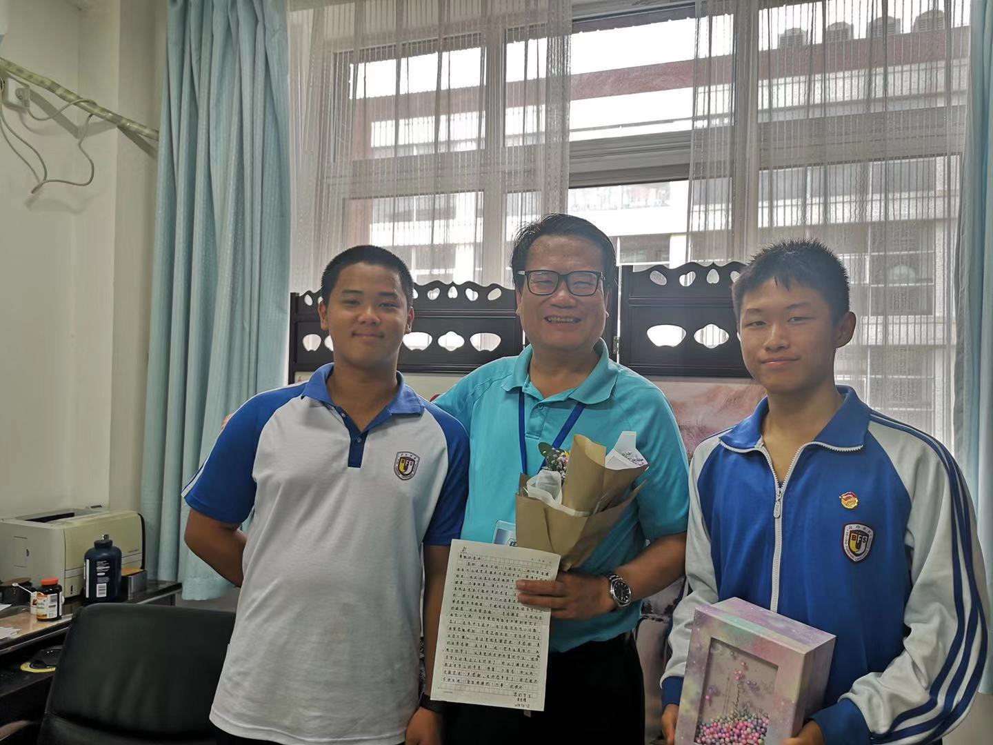 【镜头一:高中学生为林校长献花和亲笔信】