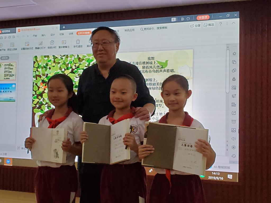 9月16日,著名诗人、散文家高洪波来到我校,为小学四年级全体师生上了一节别开生面的课,主题为“诗是精神最美的闪电”。小学副校长孙亚楠出席本次活动。