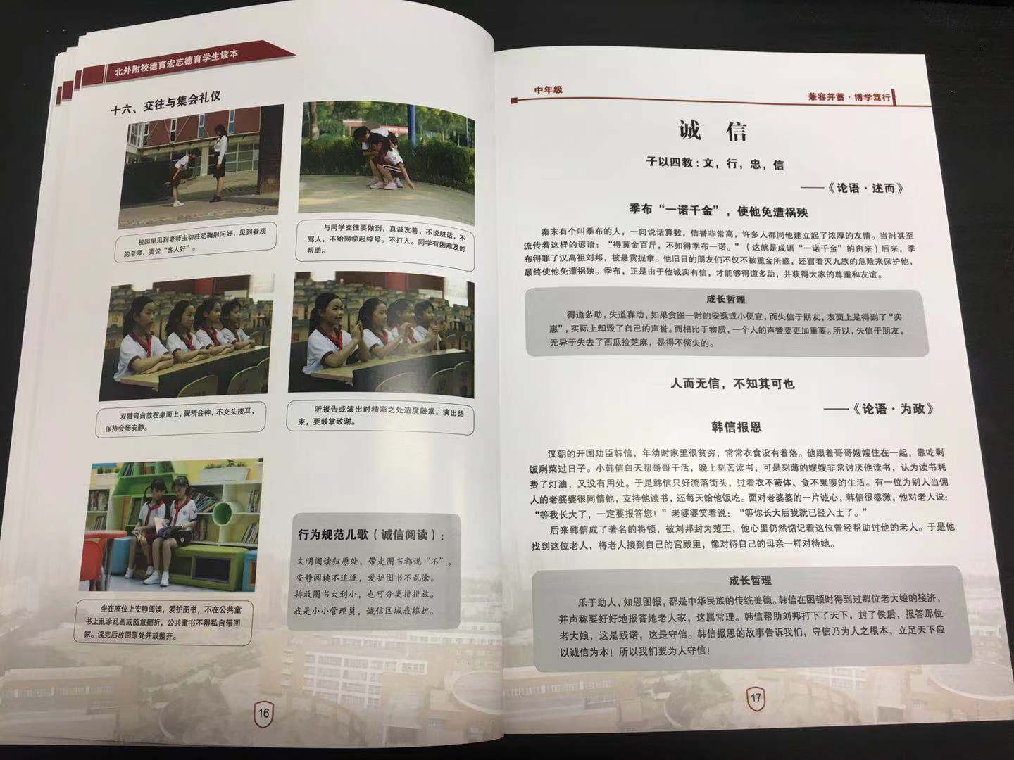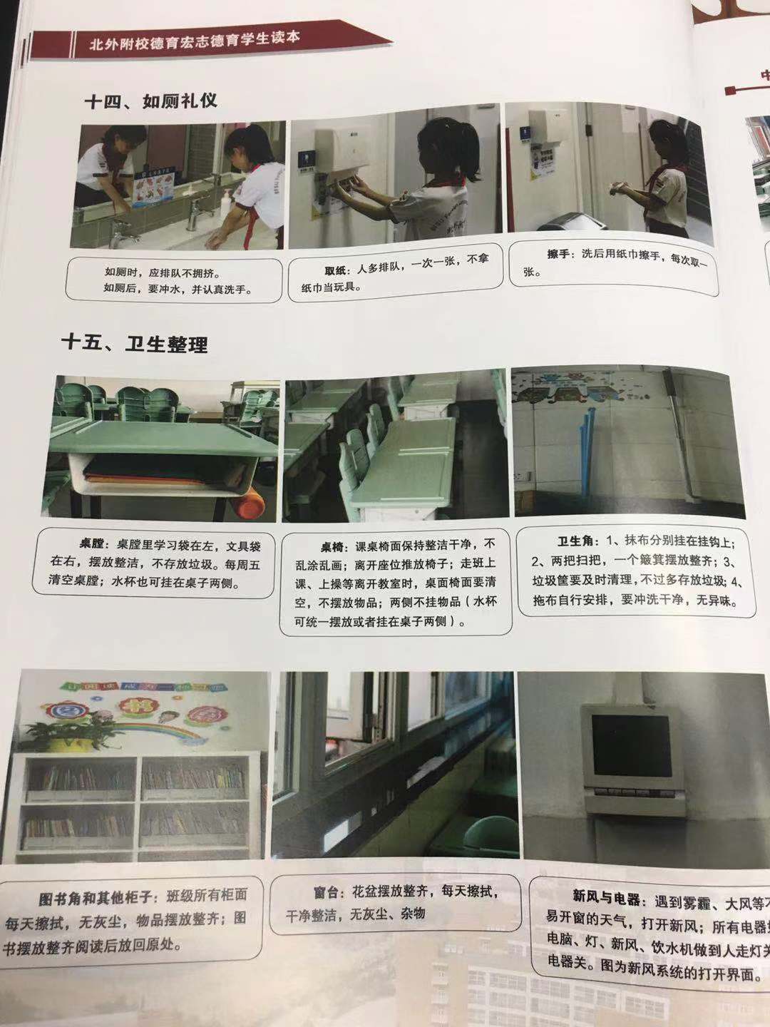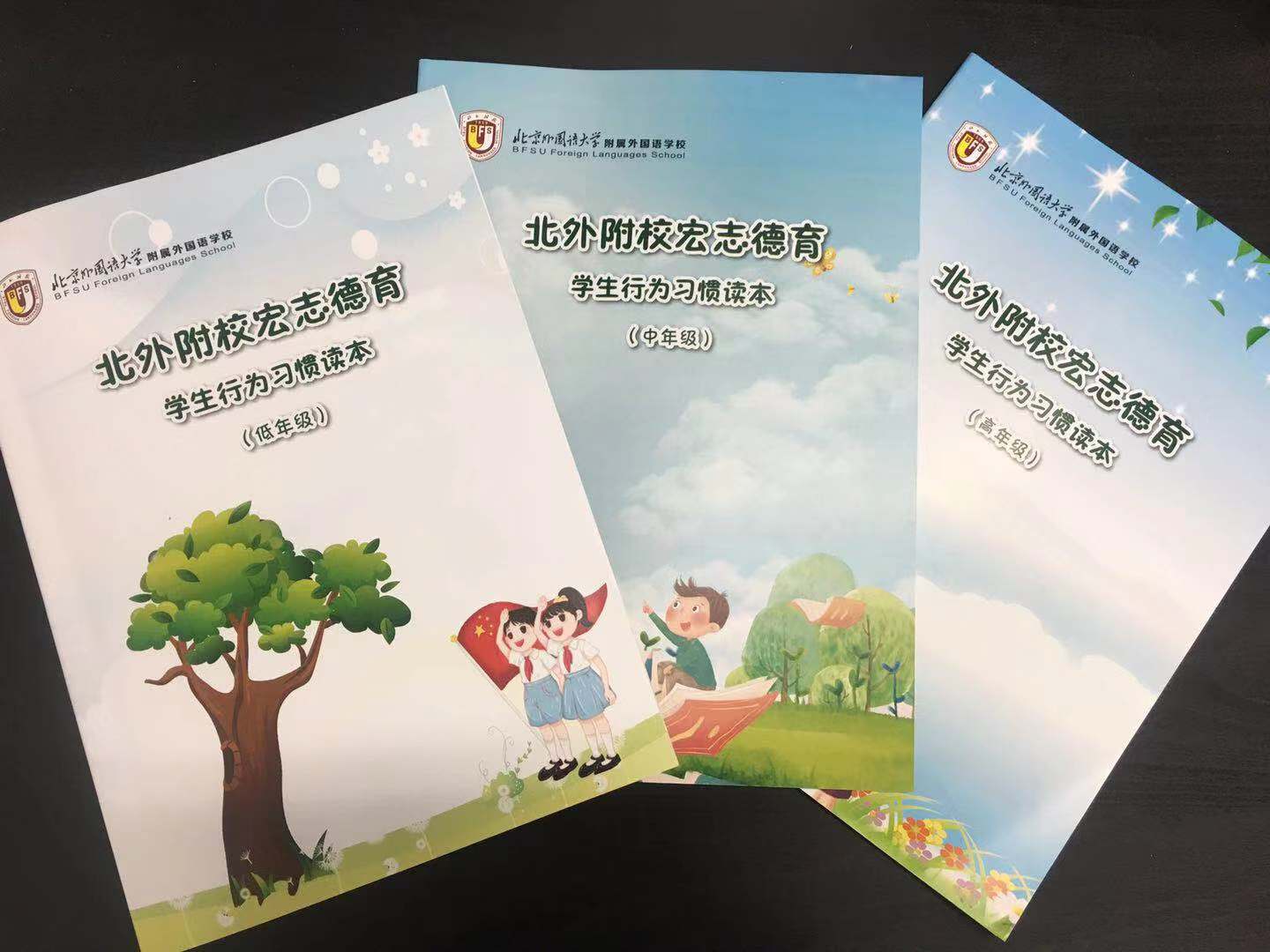 为持续推动我校宏志德育行为习惯养成教育,2019年9月,小学德育处根据《宏志德育实施细则》要求以及《2019年北外附校学校工作思路》,完成 《北外附校宏志德育 学生行为习惯读本》(以下简称《读本》)的编撰工作,并向全体师生发放,从而推动进一步落实教育部《中小学德育工作指南》的各项要求。