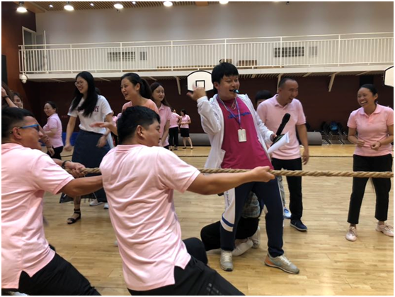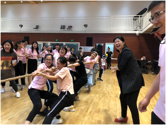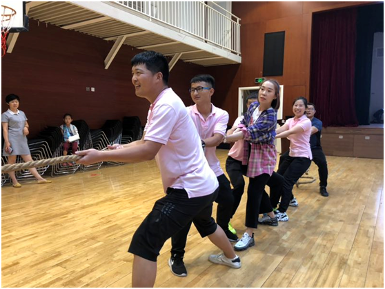 活动以拔河比赛的形式开展。随着裁判员一声哨响,比赛在双方队员的呐喊声和热烈的加油声中火热开展。双方队员奋力拼搏,友谊第一,比赛第二,最终以体育组获胜取得圆满成功。