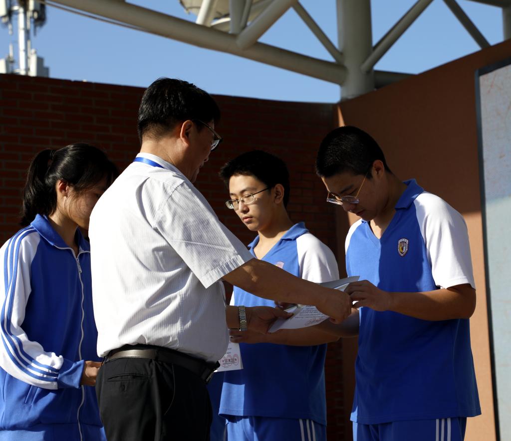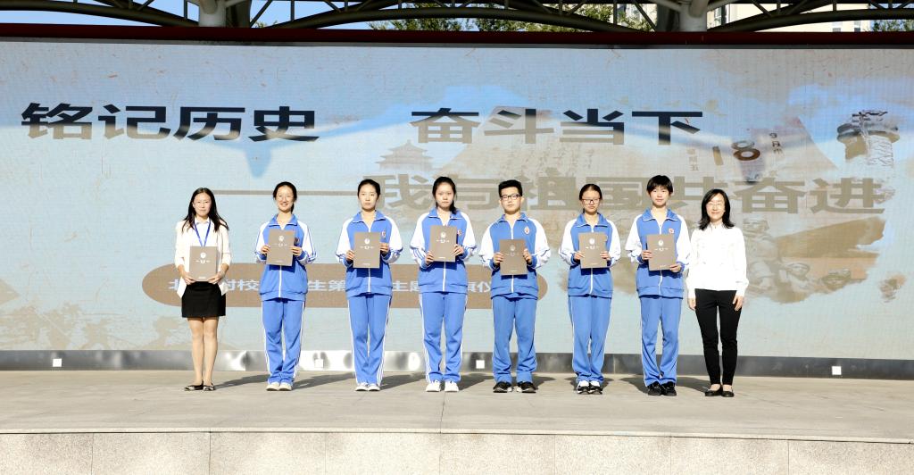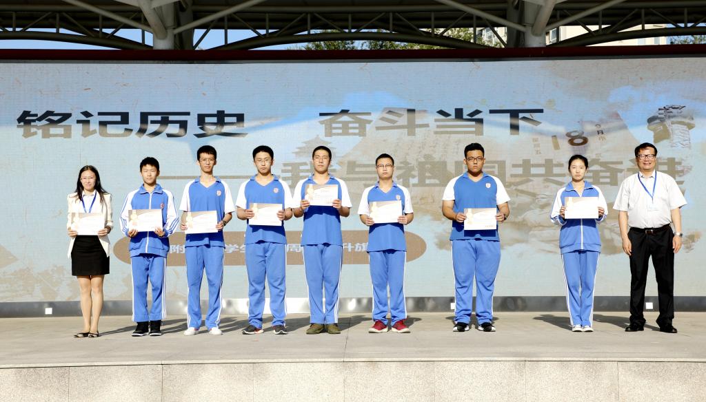 在今年暑假,2019“外研社杯”全国中学生外语素养大赛全国中决赛中,王曼丁同学荣获二等奖,李碧玥、张瑾姝等七名同学荣获三等奖。孙静、刘瑞芳两位老师荣获优秀指导教师奖。我校高中校区执行校长王静上台为获奖师生颁奖。