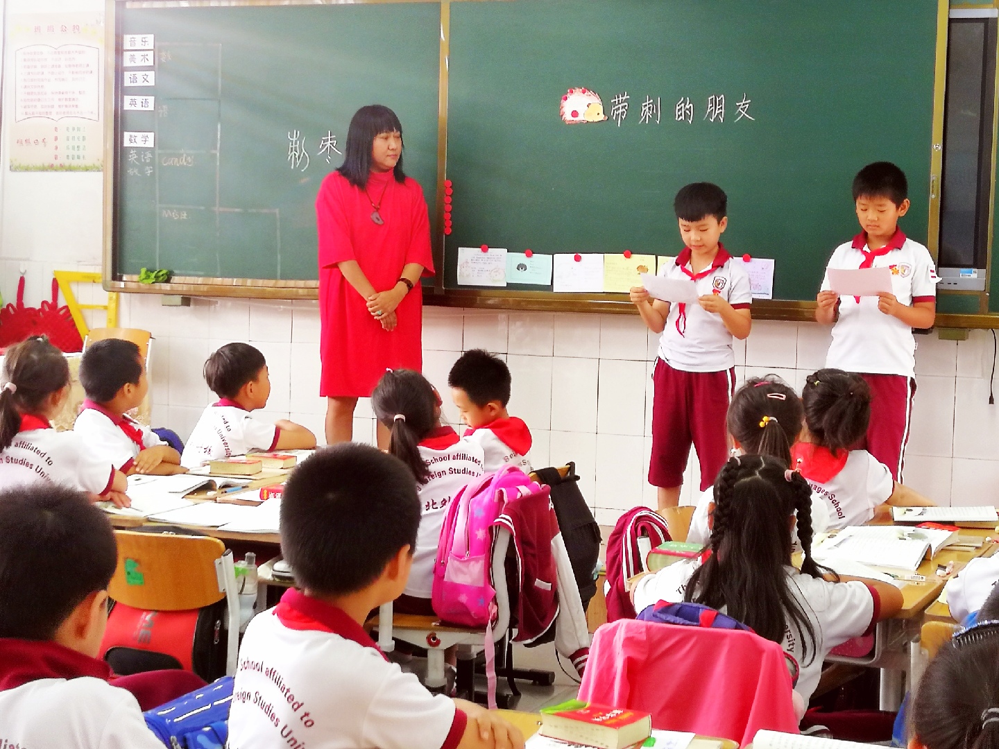 王宇老师所授的《带刺的朋友》一课,注重调动学生学习的自主性,利用已有经验,借助工具书,任选音序和部首查字法。了解题目中的“朋友”除了人与人之间的关系,还可以延伸到人与动物和自然,巧妙引出课题。运用甲骨文理解“刺”和“枣”字,找到“枣”和“馋”的共同处——“两点”,联想所学过的带两点的字,感悟每个点代表的不同含义,教会学生温故知新。此外,王宇分类批阅点评学生的预学单,一语中的指导学生预学要抓住有效的语文价值,让学生豁然明了,直击核心知识,抓住作者对带刺朋友的几次不同称呼,统领全文逐步理解作者的细腻文笔、丰富情感,甚至自我挖掘出“带刺的朋友”是作者内心感受的深层体现。王宇备课扎实、教书踏实,培养孩子们的良好学习习惯,这让年轻教师们学到很多。