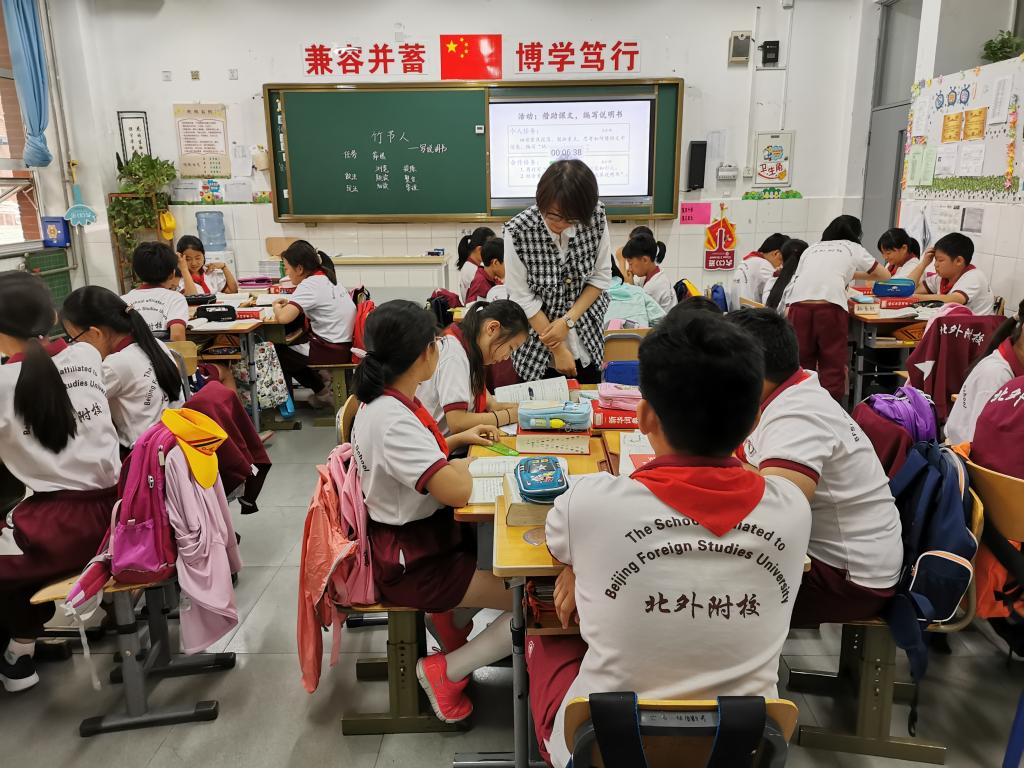 黄微微老师执教《竹节人》这一课主要围绕着“有目的阅读”这一单元策略进行教学活动。黄老师引导学生“有目的阅读”,并采用计时的方式检测学生的阅读速度。整节课学生们在“做中学”,在阅读探究中学会倾听、乐于分享、积极反思,提升自己的合作学习能力。