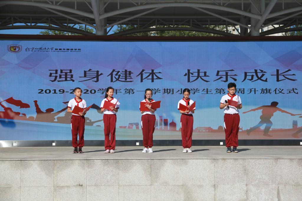 9月23日,北外附校小学校区举行2019-2020学年第五周“强身健体,快乐成长”主题升旗仪式。参加此次升旗仪式的特别嘉宾有来自法国巴黎东部艾诺瓦西国际学校姊妹校的29名师生。