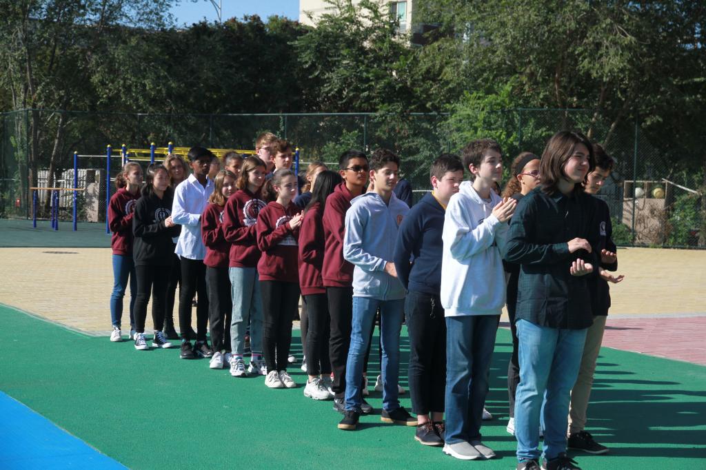 在全体师生及法国小伙伴的注目下,我们共同升起了中法两国国旗,对法方交流团表示热烈欢迎!在操场上空飘扬着的两国国旗,是两校友谊的见证,也预示着此次交流活动的圆满成功。