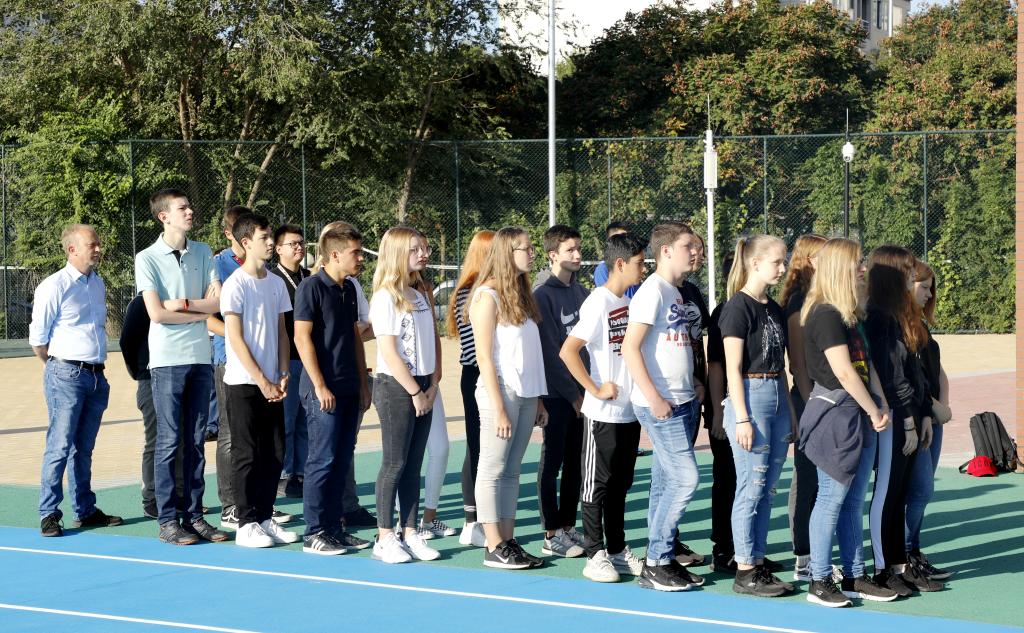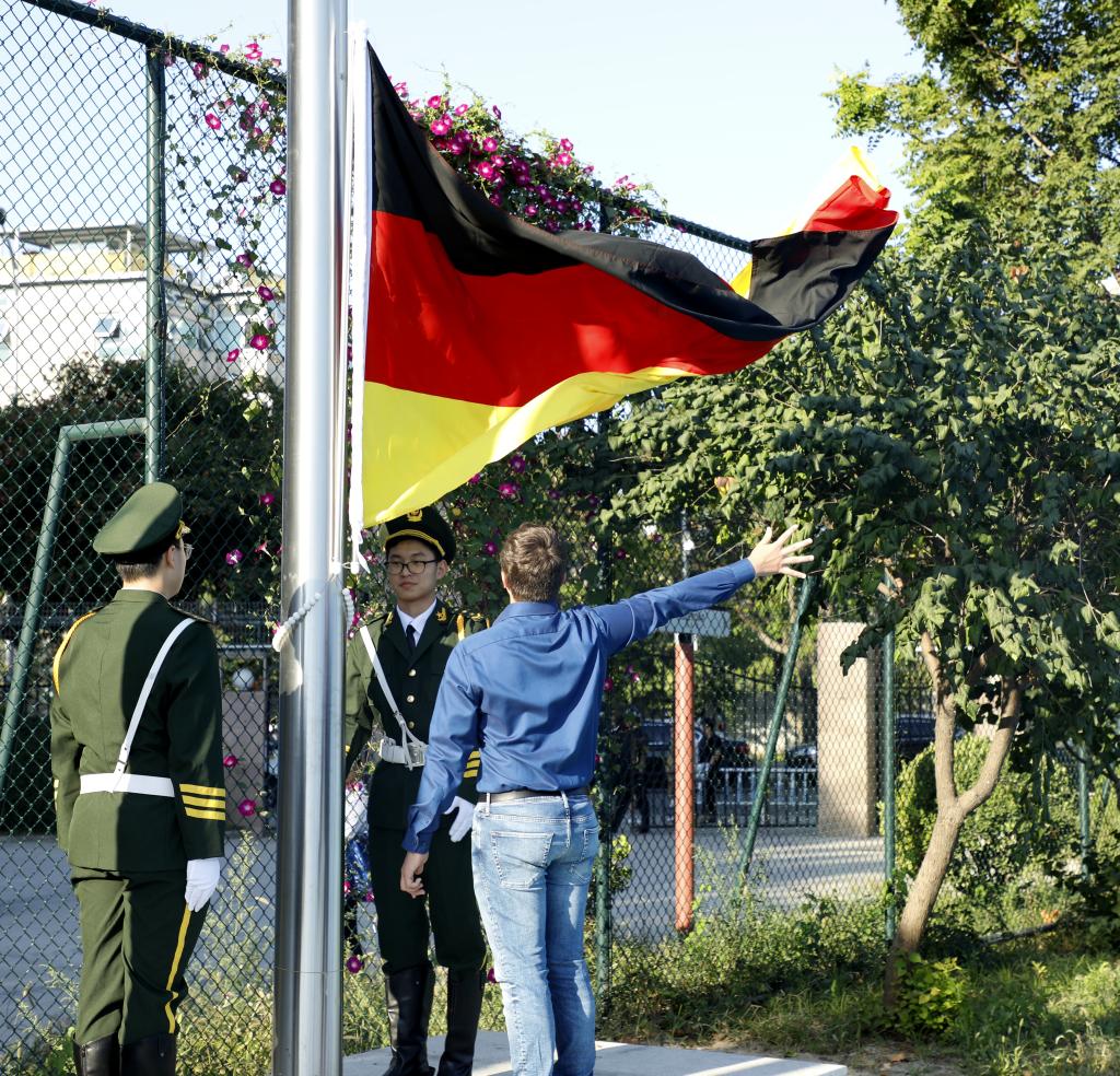 德国姊妹校Löwenrot文理中学师生应邀参加了本周的升旗仪式。为表示我校的热情与重视,在中国国歌演奏完毕后奏响了德国国歌,中德两国国旗共同飘扬在九月的晨光中。
