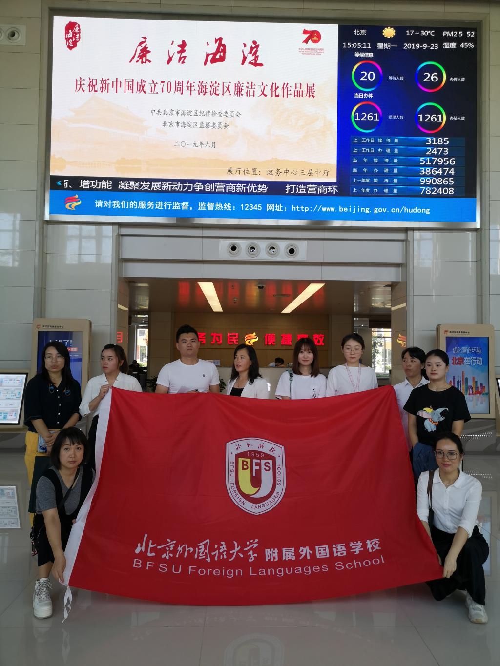 为深入贯彻党的十九大精神和习近平新时代中国特色社会主义思想,深入开展“不忘初心、牢记使命”主题教育,隆重庆祝新中国成立70周年,进一步加强海淀区廉洁文化建设,营造风清气正的社会氛围,海淀区纪委监委将举办廉洁海淀“庆祝新中国成立70周年海淀区廉洁文化作品展”。 9月23日下午,我校工会组织部分教职工赴区政府上地办公区展区参观了“廉洁海淀”书画展。