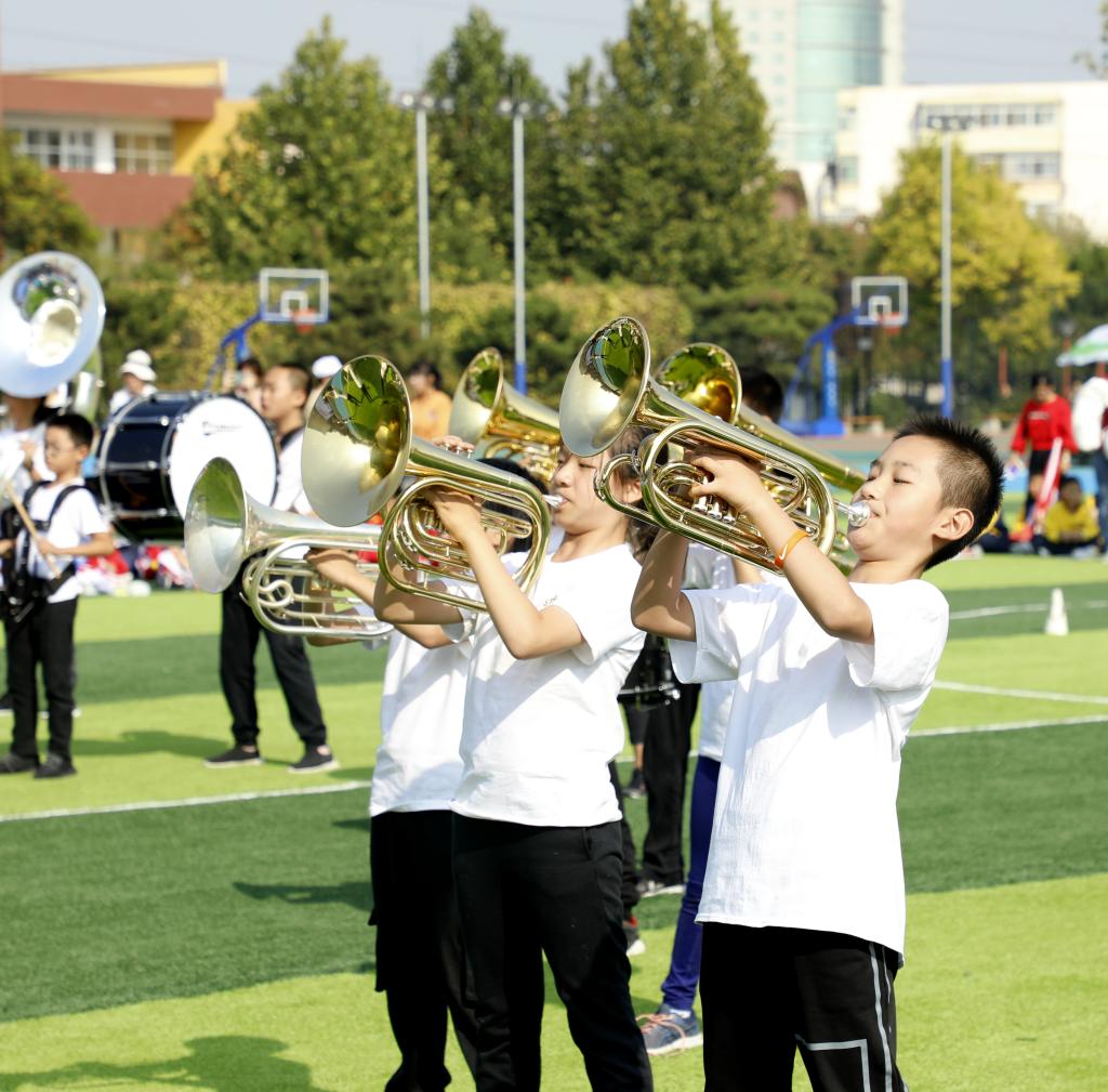 入场完毕,全体肃立,升国旗奏唱国歌。小学执行校长刘宏利致开幕辞,刘宏利指出体育工作是我校工作的重要内容之一,我校十分重视同学们的身心健康,一直开展形式多样的体育活动,并在各级各类体育赛事中取得了优异成绩。她表达了对本届运动会的期待和要求,并预祝运动会圆满成功。接着家长代表李婷发言。李婷向为举办这次运动会付出辛勤劳动的学校领导和老师们表示诚挚的感谢,她指出强健的体魄是学业的保证,希望同学们能弘扬胜不骄败不馁的体育精神,展现自我,永不言弃,取得优异成绩。随后裁判员代表及运动员代表宣誓,他们表示将严格遵守比赛规则和赛场纪律,公平公正,实事求是,赛出风格、赛出水平。我校STARRY SKY行进管乐团带来了精彩的行进管乐表演,成为本届运动会上一道亮丽的风景线。最后,林卫民铿锵有力地宣布运动会比赛正式开始。