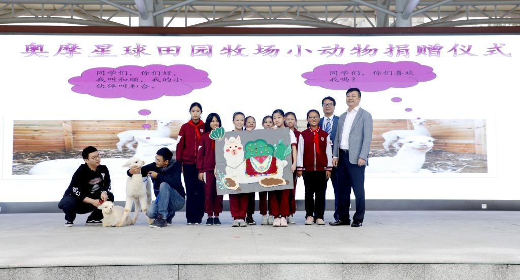 北外附校今天迎来了一群“新同学”--可爱的羊驼。它们由北京四季文旅科技股份有限公司的金健先生捐赠,这群“新同学”的到来将为我校开展一系列动物主题特色课程提供极大的帮助。