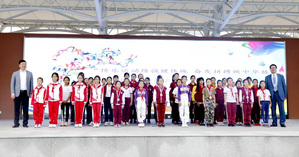 校长林卫民和金健先生为运动健儿颁奖