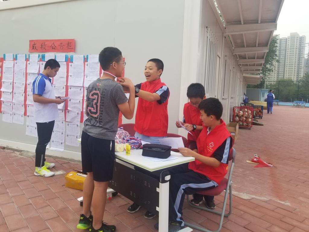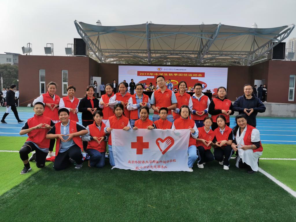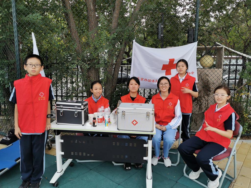 2019年10月10日至11日,北外附校中学生秋季田径运动会在崭新的操场如火如荼地举行。为了确保运动健儿的安全与健康,我校红十字会的志愿者——“红豆外外”在主席台南侧设立了爱心医疗服务点,提供后勤保障。