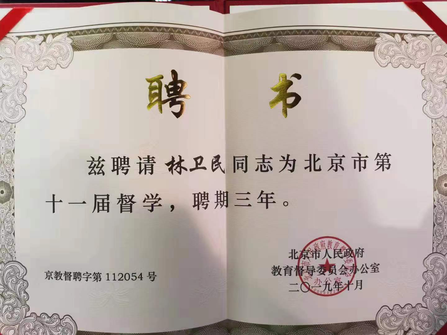 10月18日,北京市人民政府教育督导委员会召开第十一届督学聘任大会,我校校长林卫民受聘兼职北京市人民政府教育督导委员会第十一届督学。