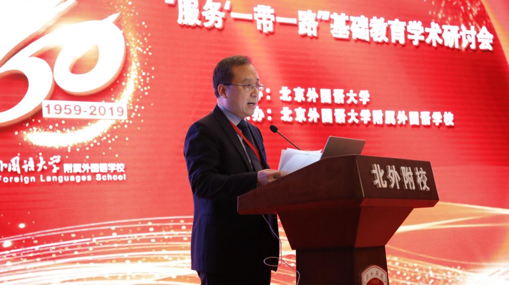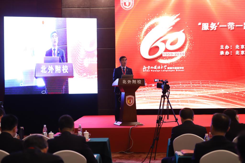 10月19日,由北京外国语大学主办、北京外国语大学附属外国语学校承办的“服务‘一带一路’”基础教育学术研讨会暨北外附校建校60周年纪念活动在泰山饭店举行。多位专家学者、各地中小学校长莅临研讨会并对北京外国语大学附属外国语学校建校60周年表示了热烈祝贺。