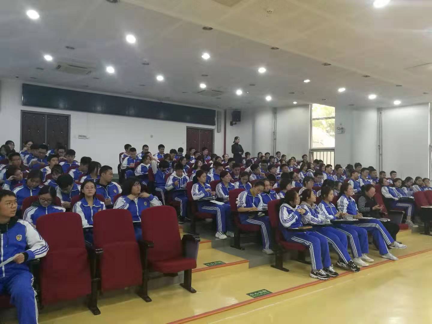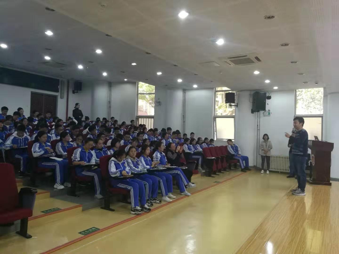 10月21日下午第八节班会时间,高二全体学生齐聚一阶,听取了新东方金牌讲师李洪涛老师带来的一场别具风格、生动形象、富有启发的“探寻万能学习法”的报告。