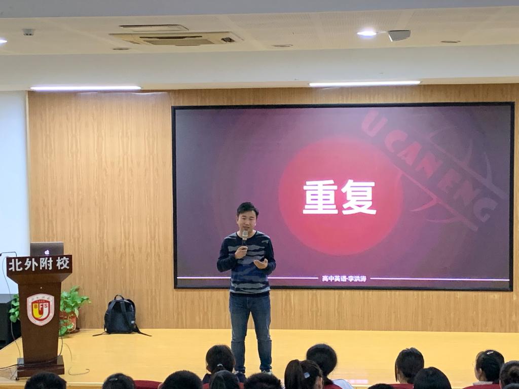 李洪涛借助生动形象的例子,结合单词的记忆,强调在我们的学习生涯中,面对纷繁的知识,我们唯有以积极的心态——接受它,进而记住它。“记住”,是一切的前提。如果不能在理解的基础上记住,那就在记住的基础上慢慢理解。而重复则是记住的重要途径。俗话说:读书百遍其义自见。