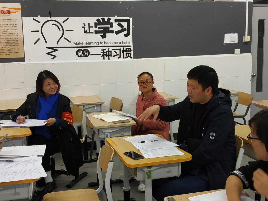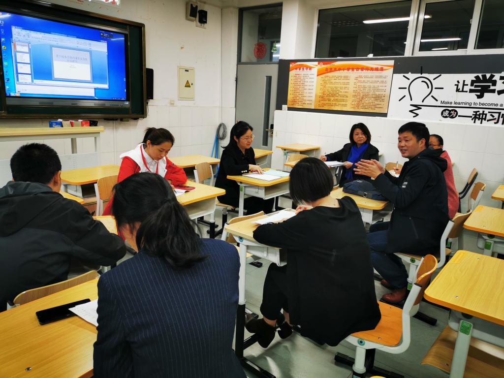 经过两天的听课后,10月24日上午9点40分,高中数学组全体数学教师与来自四川省自贡市的骨干教师齐聚主教楼509室,共同开展了数学教研活动。