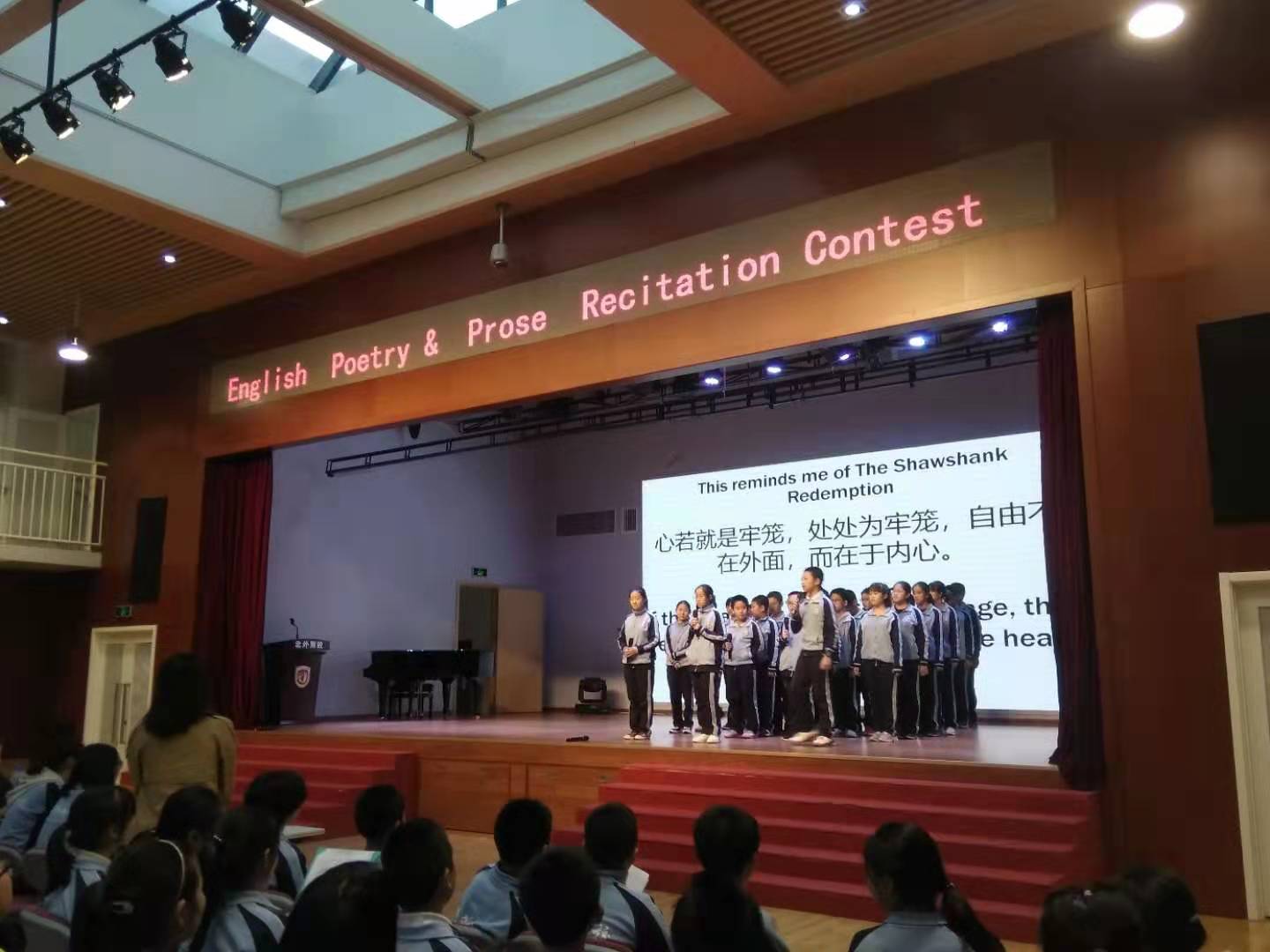 10月24日下午,由初一英语组主办的诗歌散文朗诵比赛——English Poetry & Prose Recitation Contest在我校国瑞厅举办。英语外教Adam, Amar, Harris和 Sean以及特约嘉宾杨卓老师和宋阿云老师出席并担任评委。