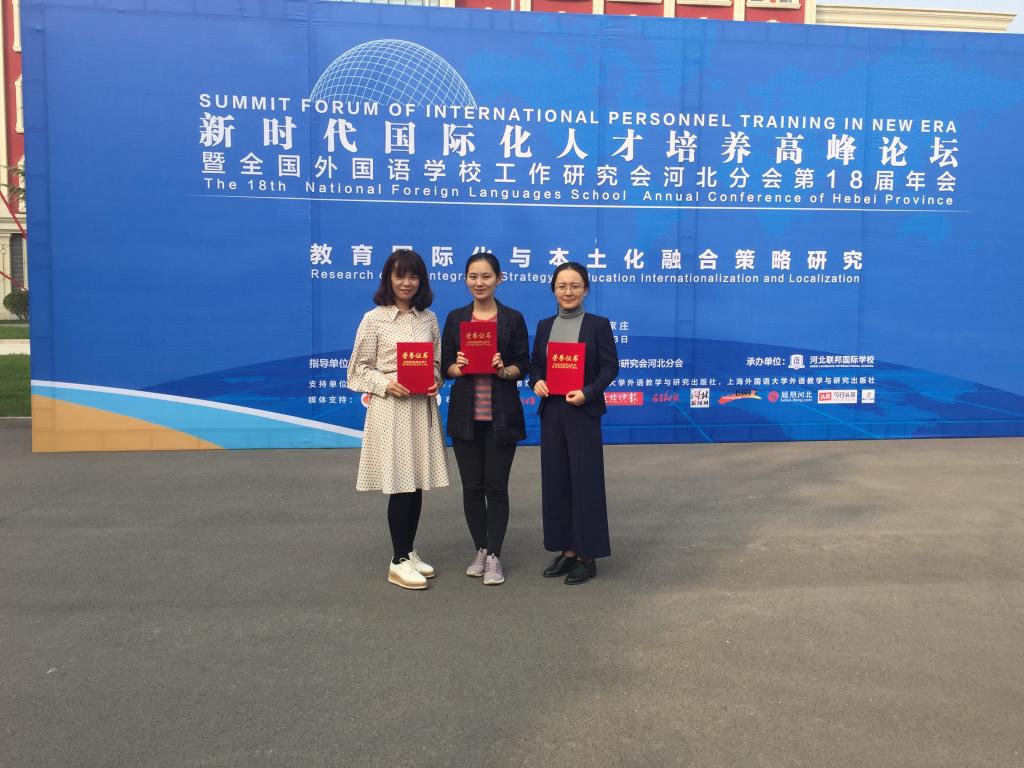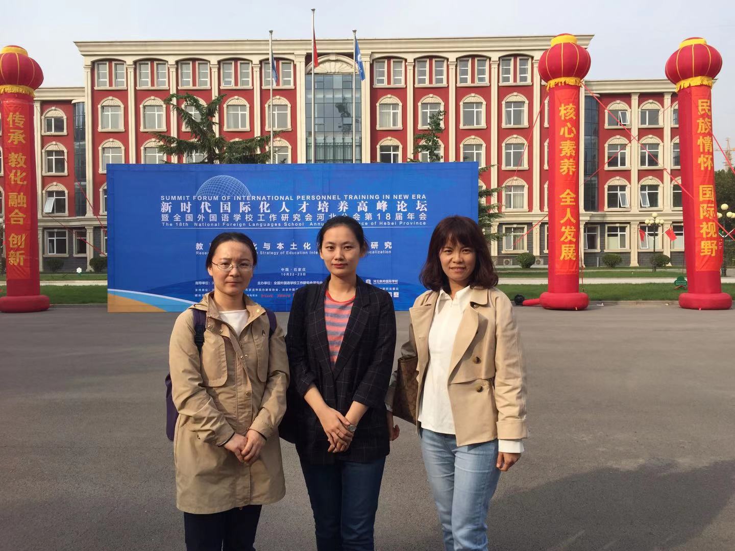 2019年10月22日—23日,我校三位老师赶赴河北省石家庄市,参加了“新时代国际化人才培养高峰论坛暨全国外国语学校工作研究会河北分会第18届年会”,并与来自京津冀多所学校的教师一起进行了示范课展示和教学研讨活动。
