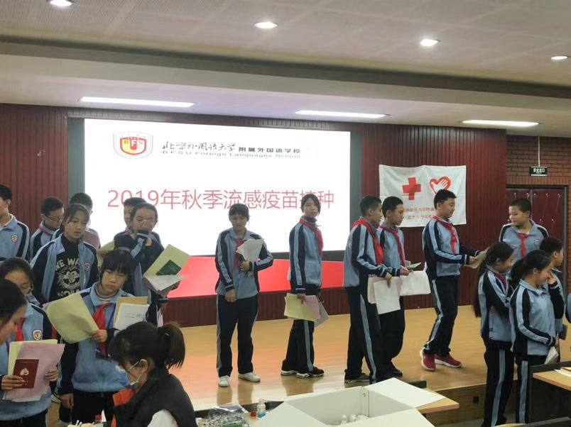 本次疫接种工作医务室在总结小学部接种过程的经验上加强组织与协调力度,在医务室大夫的统筹安排下,初高中部各年级组长、班主任及生活老师积极配合,同学们听从指挥有序接种。本次医务室与清河医院防保科配合更加默契,在2小时内顺利结束接种工作。至此,2019 秋季北外附校流感疫苗接种圆满收官!