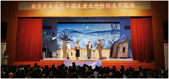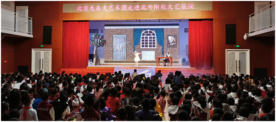 10月31日,我校小学皮影选修课合作单位北京龙在天艺术团走进我校,进行文艺展演,小学一二年级学生在国瑞厅观看了原创儿童剧《爸爸的庄园》。