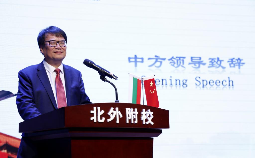 大学校长助理、附校校长林卫民首先致辞。他指出,1949年10月4日保加利亚共和国正式与我国建交,对新中国来说,是雪中送炭的挚友,也是同舟共济的益友。值此中保建交七十周年之际,举办主题展览对加强两国文化交流,促进民间文化理解具有重要意义。林卫民对此次展出的保加利亚儿童们五彩斑斓、童真童趣的绘画作品感到欣喜,这些作品远渡重洋、跨越语言与国界,与附校学生的绘画作品共同描绘出两国少年儿童对彼此文化的尊重与向往,饱含着两国共创美好未来的希翼。林卫民希望同学们借此机会能够努力学习和吸收中保两国的优秀文化,立鸿鹄之志,为两国友好交流谱写新的篇章。