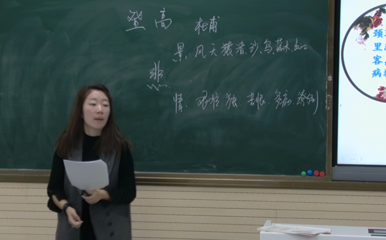 10月29日上午第三节课,高中语文组罗姗姗老师在录课室上了一节以《登高》为主题的公开课。教务处的领导、语文组老师及部分其他学科的老师前往听了课。